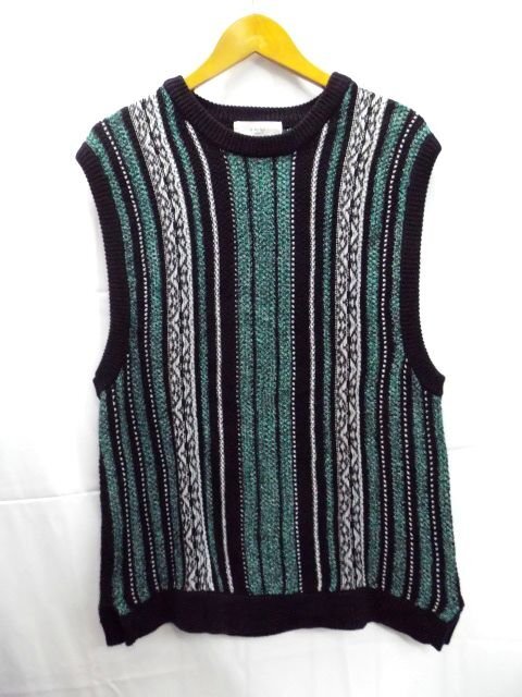 B:MING by BEAMS★ビーミング バイ ビームス/ニットベスト/総柄/グリーン/ブラック/Sサイズ【中古】K250108TK-10