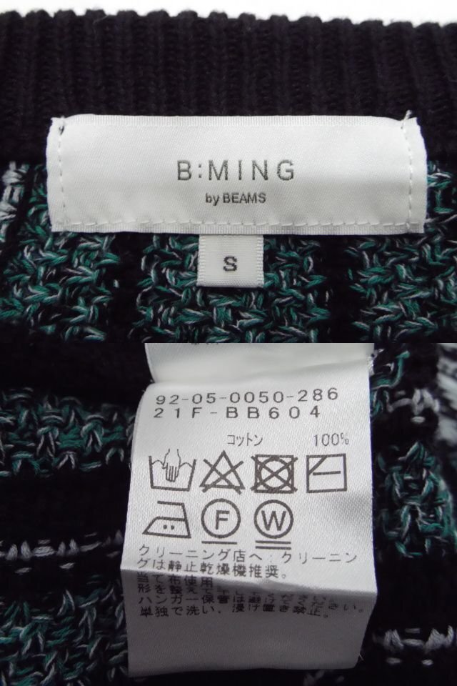 美品★B:MING by BEAMS◎ビーミング バイ ビームス/ニットベスト/総柄/グリーン/ブラック/Sサイズ