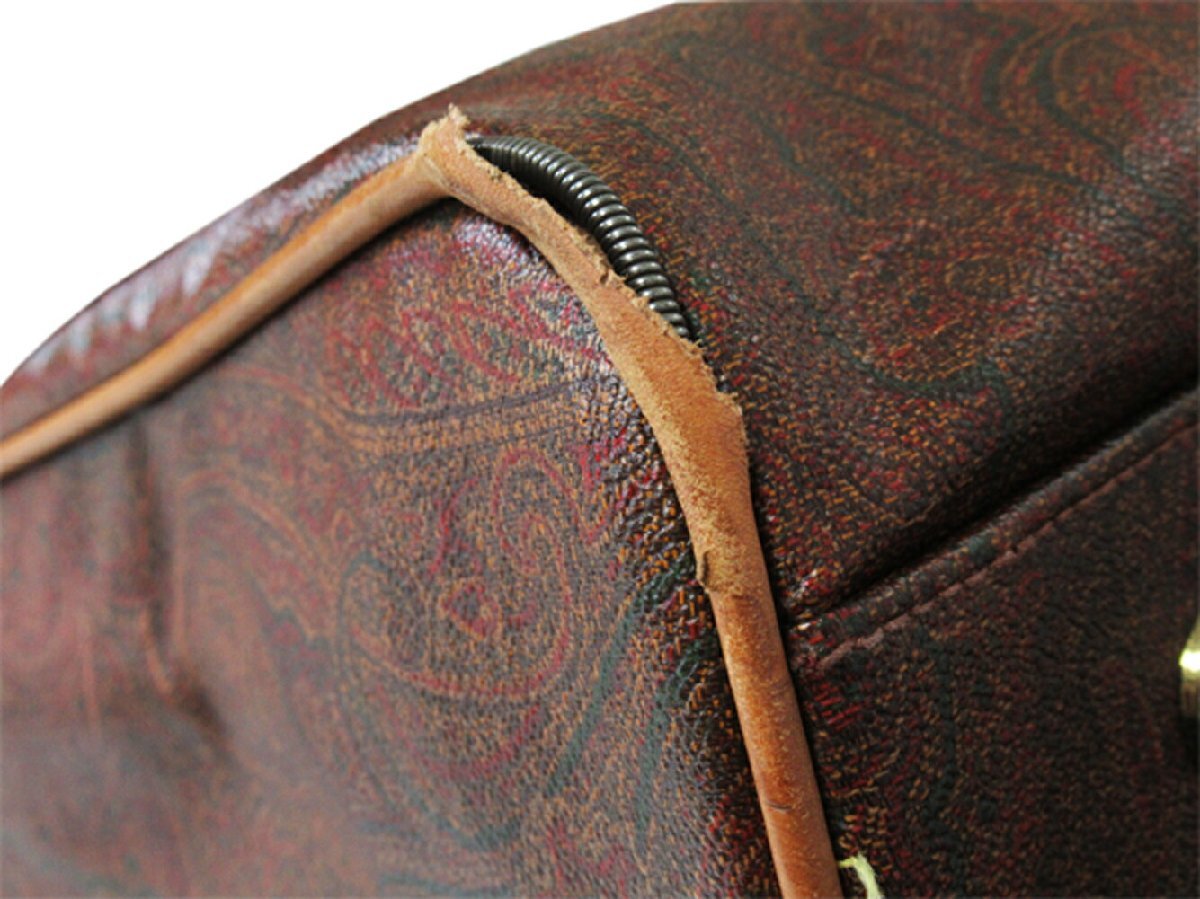 コンディション | 全体の状態詳細:使用感がありますが、お使いいただけます。破れによるワイヤー飛び出し(下角)あり。その他 スレ&汚れ(内側&ポケットもああり) 傷 中劣化(外ファスナープル革) 金具傷・ハゲ パイピング切れ多数(横&上部) などの使用感があります。 |