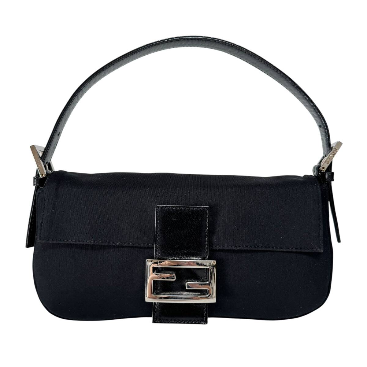 This vintage Fendi Baguette Bag is an iconic piece that defined an era of fashion and continues to captivate collectors and trendsetters alike. Crafted in soft black jersey fabric with sleek leather trim, it features the signature FF logo buckle that instantly identifies this cult favorite. The compact silhouette is perfect for day-to-night use, carried by hand or on the shoulder. A rare and timeless Fendi vintage baguette that embodies 90s minimalism and Italian luxury.
