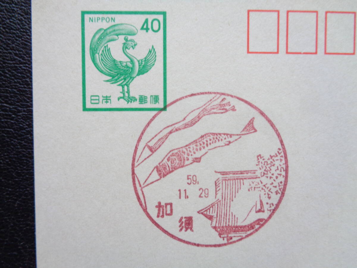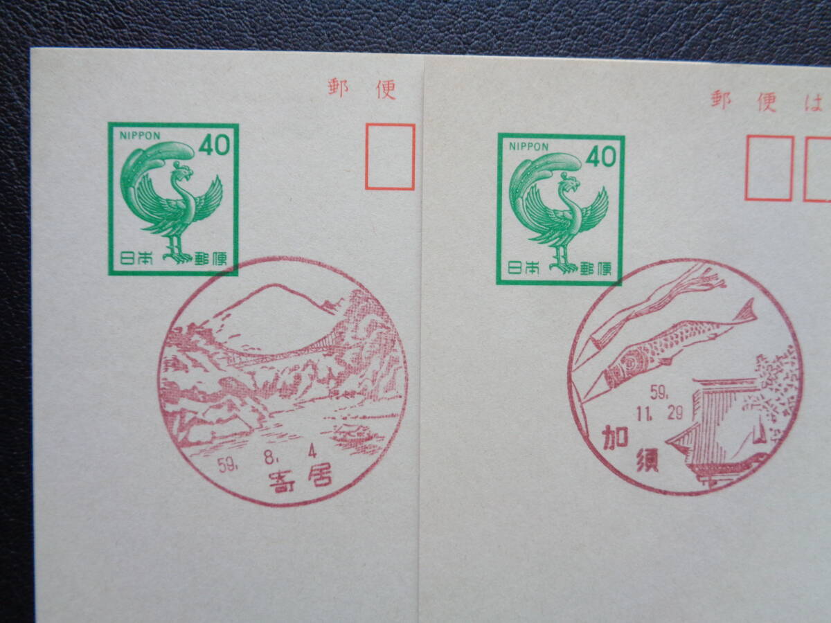 鳳凰はがき    初日印/風景印    埼玉県2枚    加須/S59.11.29    寄居/S59.8.4