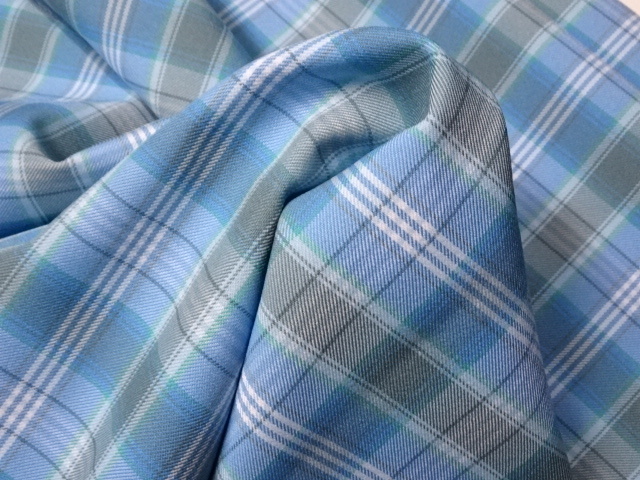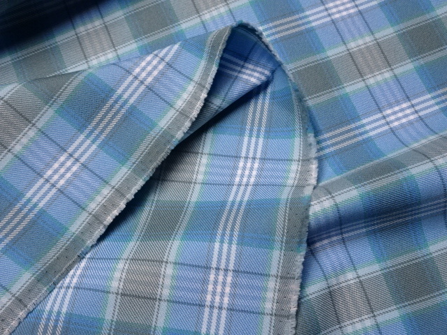 国産/pe100%/先染/チェック/ハイブランド制服/ブルー/4m/管984