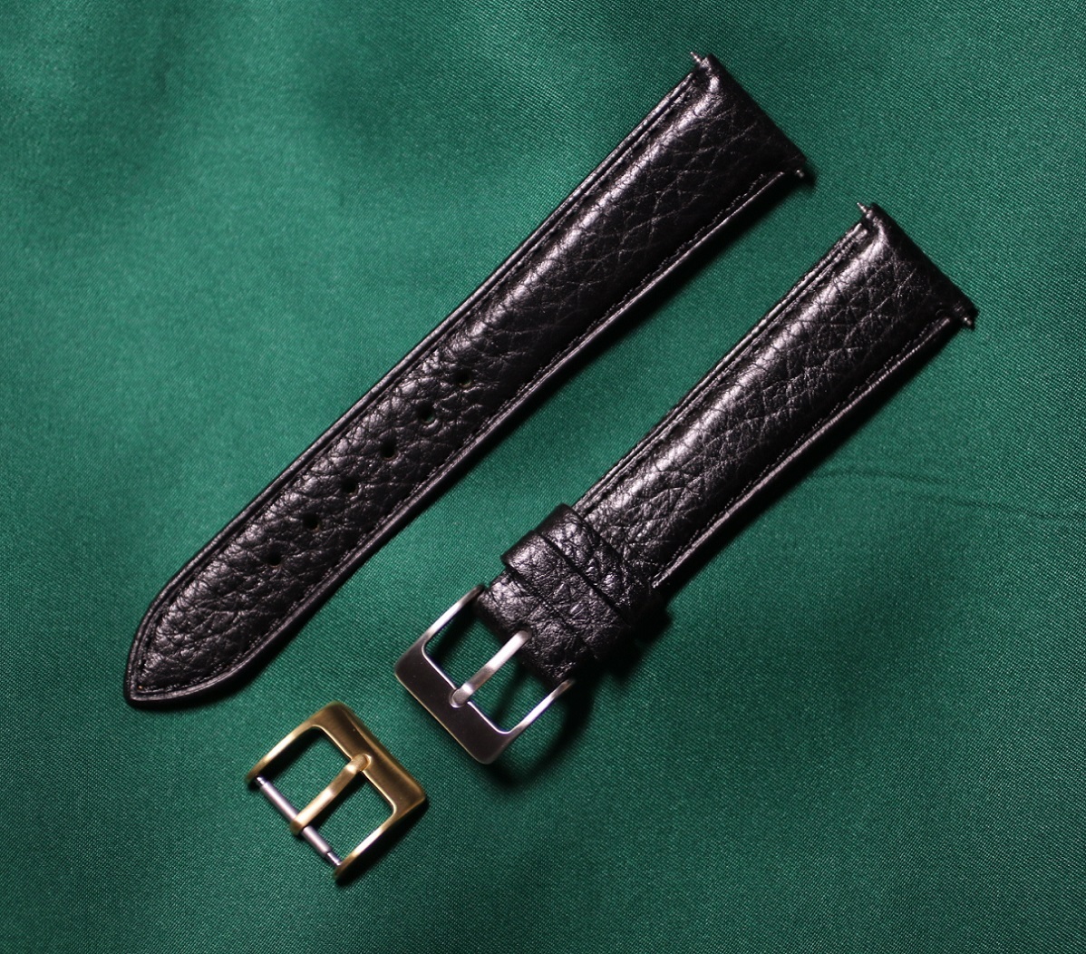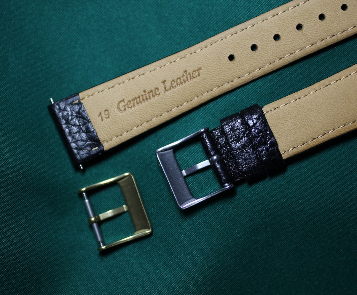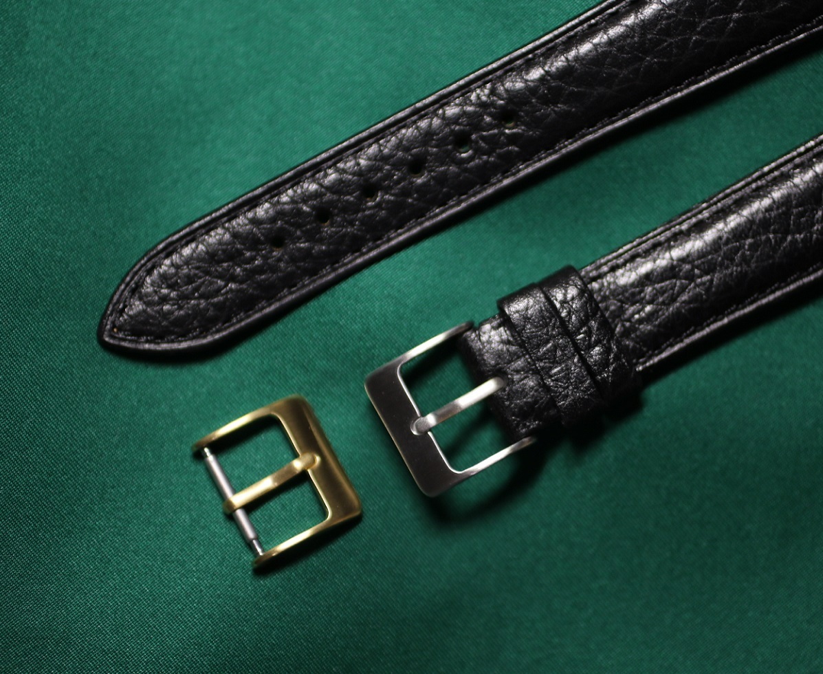 19㎜ 高級イタリアンカーフ 黒 ブラック GP/SS銀色金色尾錠 2色錠付 ばね棒付・バネ棒付 新品 未使用