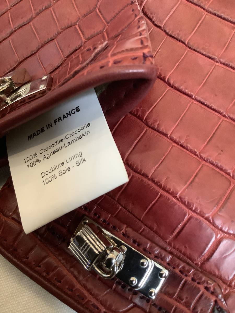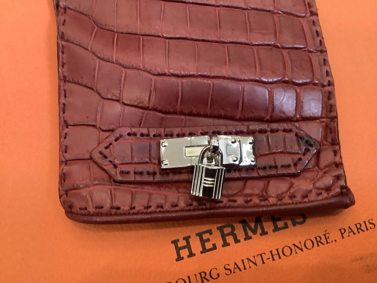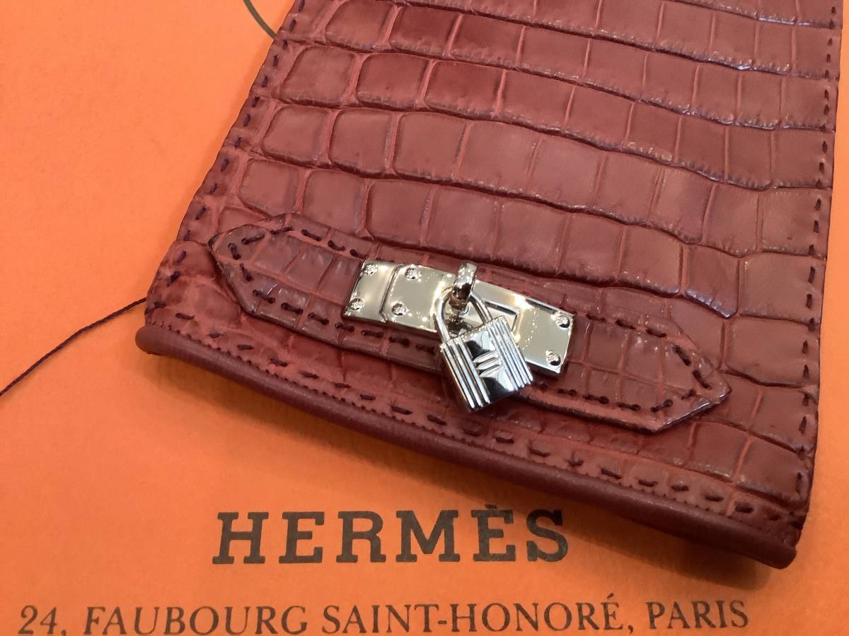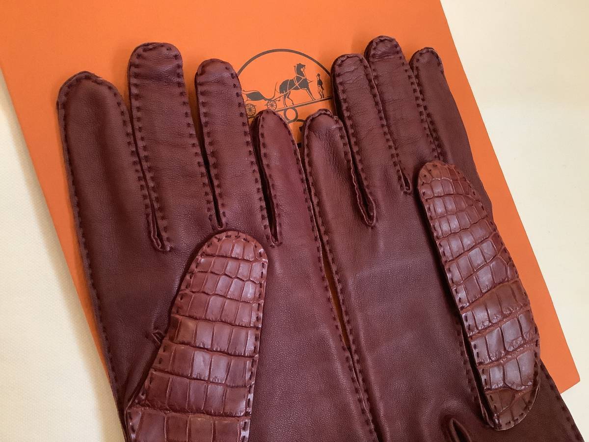 即決 新品 本物 HERMES エルメス リアル クロコ クロコダイル 希少 レア シルバー色金具 ケリー カデナ グローブ GROVE 手袋 ボルドー 7.5