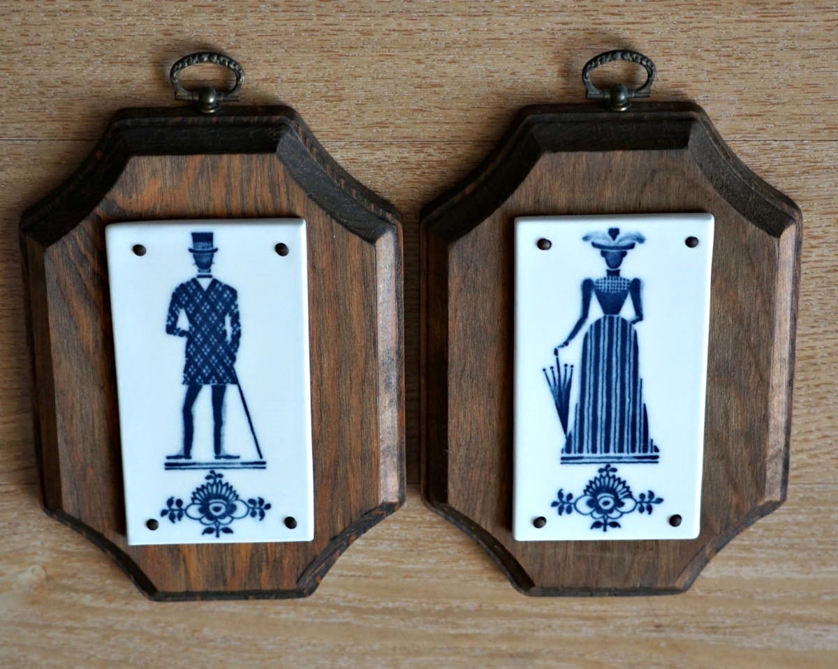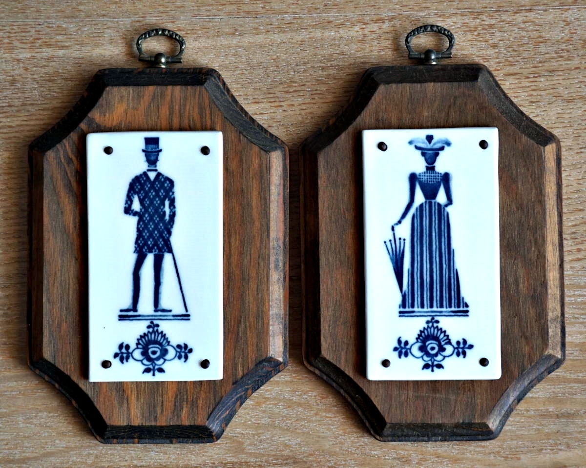 化粧室や更衣室のサインとして使用されるのが一般的かもしれませんが、一枚ずつ壁に飾られても素敵なインテリアになると思います。