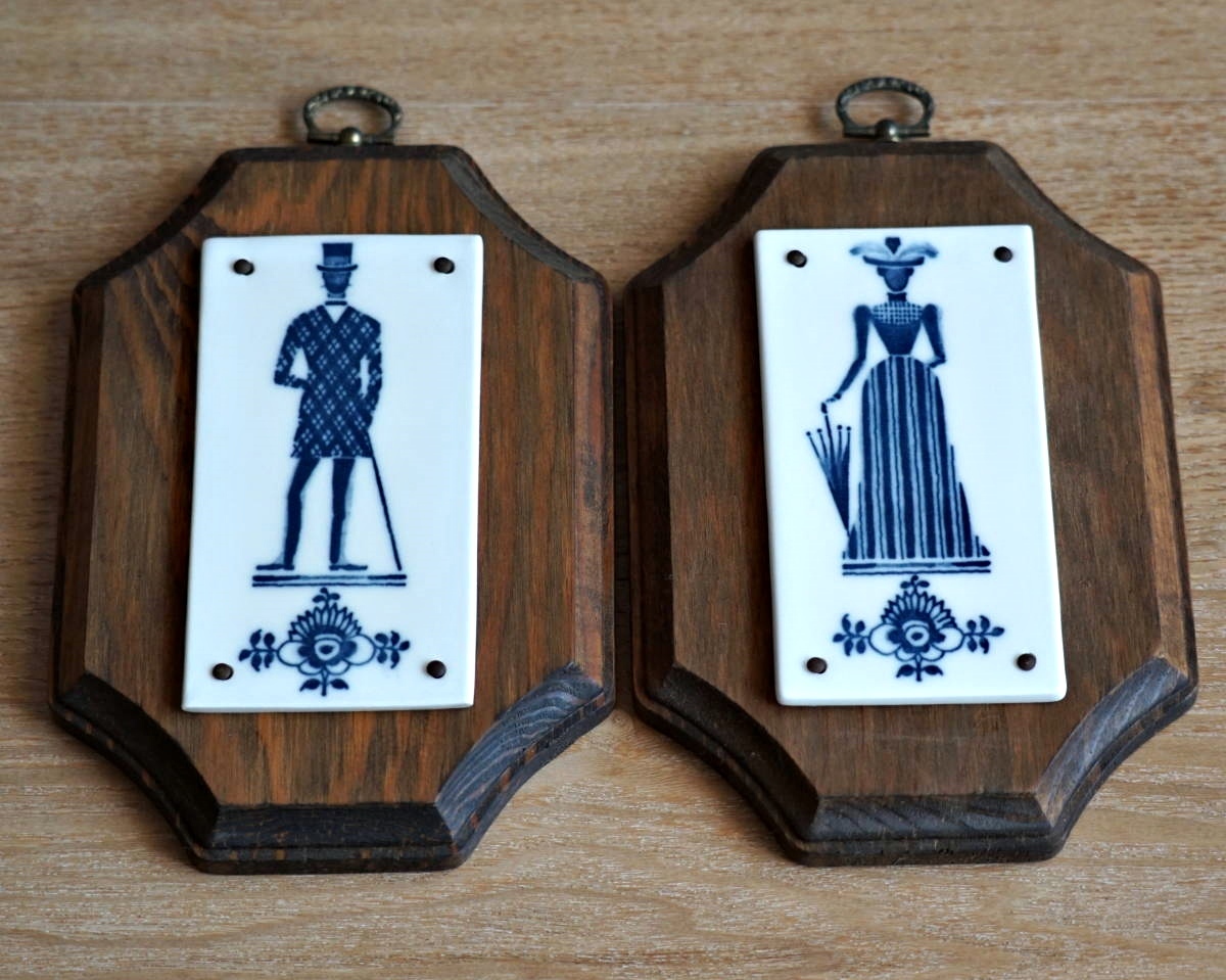 al17 即決 希少品 ヴィンテージ ロイヤルコペンハーゲン ブルーフルーテッド タイル 化粧室 更衣室 男女 サイン インテリア