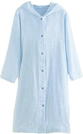 秀英産業 バスローブ ママ 速乾 日本製 フード付き マタニティー 前開き アクアジョブ 吸水速乾バスローブ 軽い 出産祝い 敬老の日(ブルー)