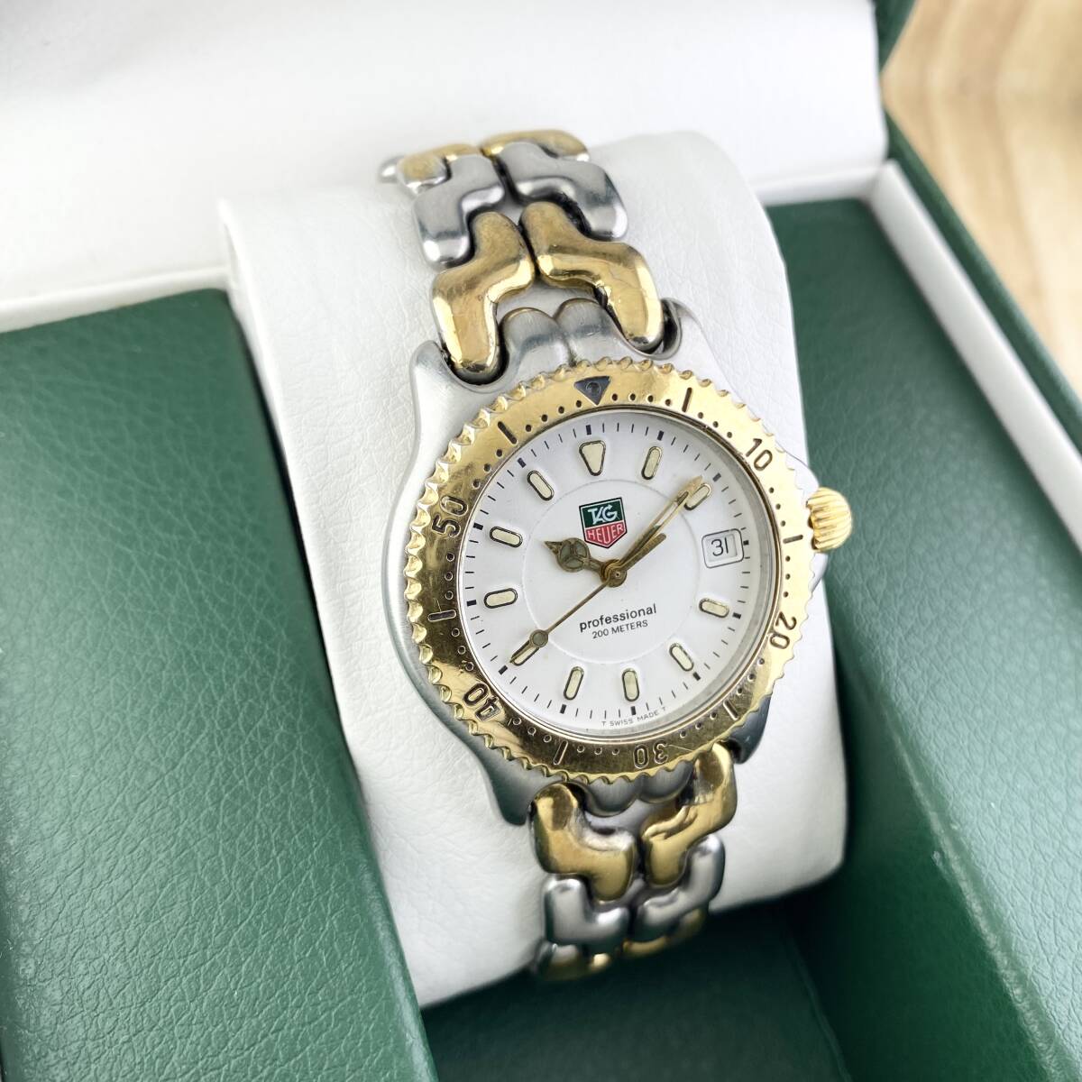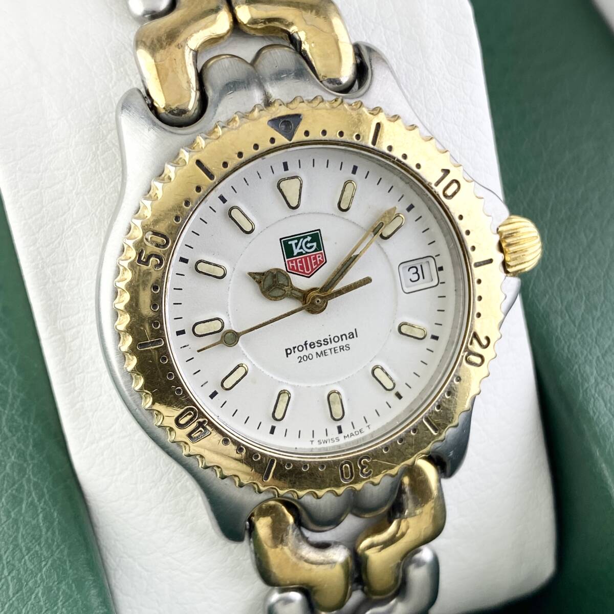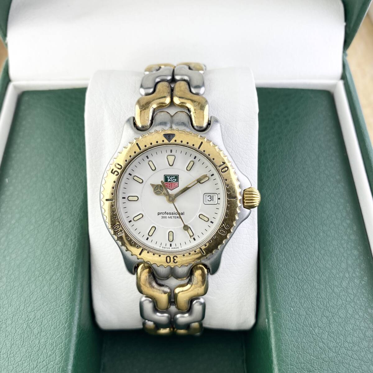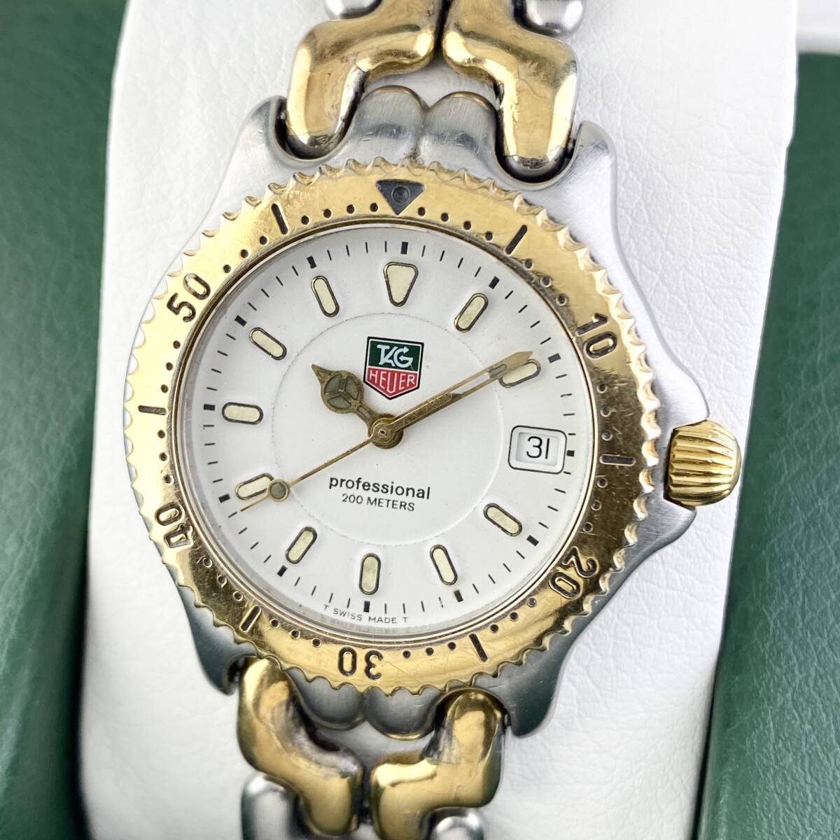 【1円〜】TAG HEUER タグ ホイヤー 腕時計 メンズ WG1222 セル ホワイト文字盤 ゴールド プロフェッショナル デイト 可動品 | |||