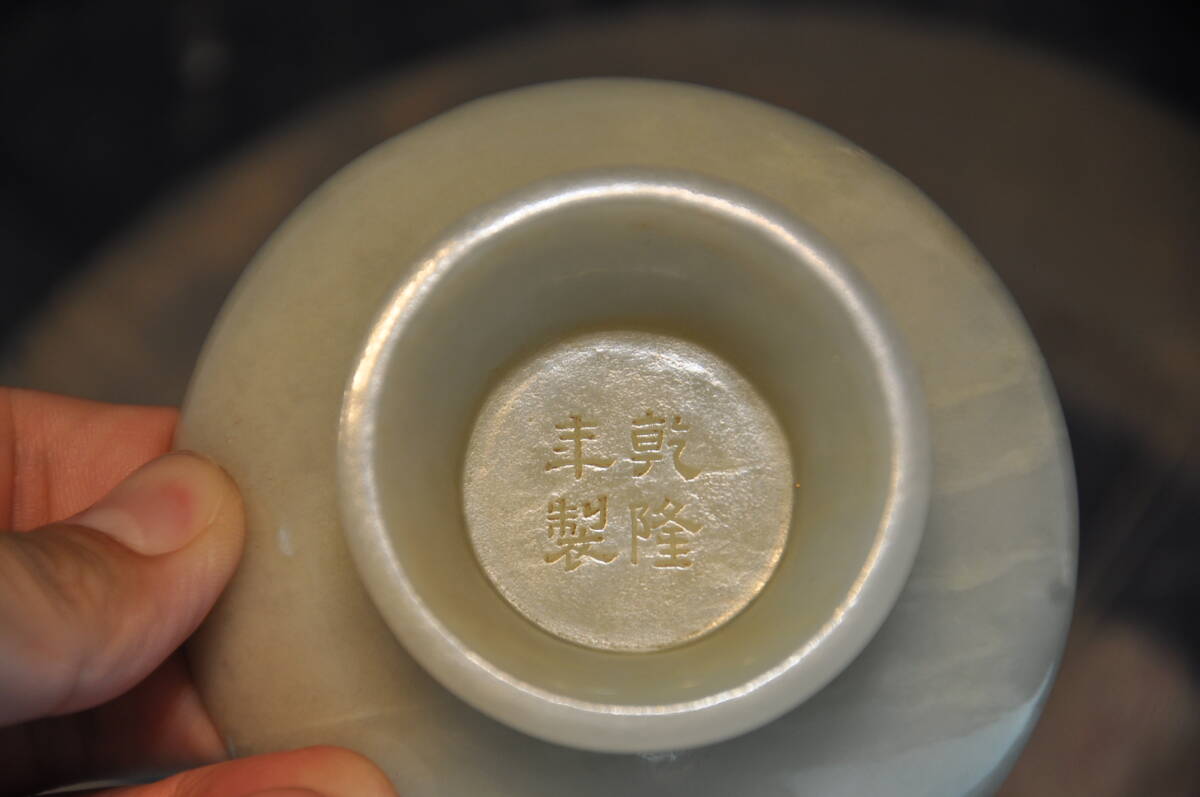 乾隆年製 白玉石彫刻建托 中国美術唐物煎茶道具です。<BR>