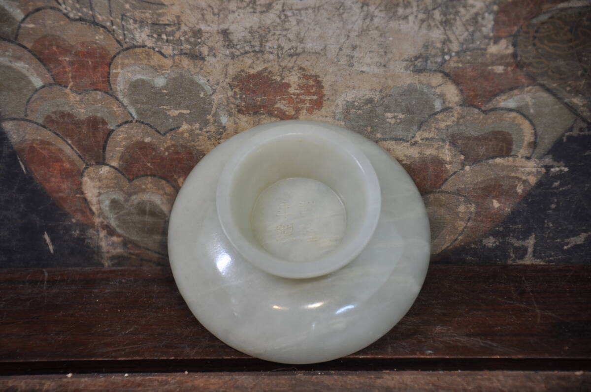 乾隆年製 白玉石彫刻建托 中国美術唐物煎茶道具