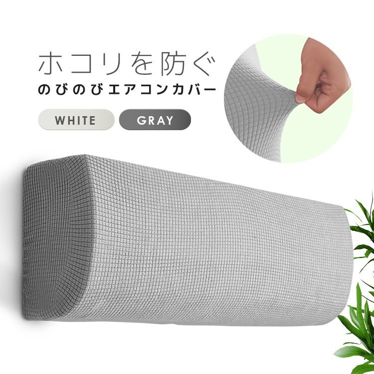 ◆エアコンカバー 室内機カバー ホワイト/グレー シンプル 無地 洗える かんたん脱着 フィットする伸縮素材 ホコリや黄ばみから守る ホコリ対策 かぶせるだけ【ホワイト】KTZ8895