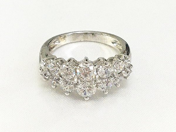 指輪 リング 925 Silver キュービックジルコニア ラウンドブリリアントカット ラインストーン/シルバー/13号/訳有/1円スタート/AY