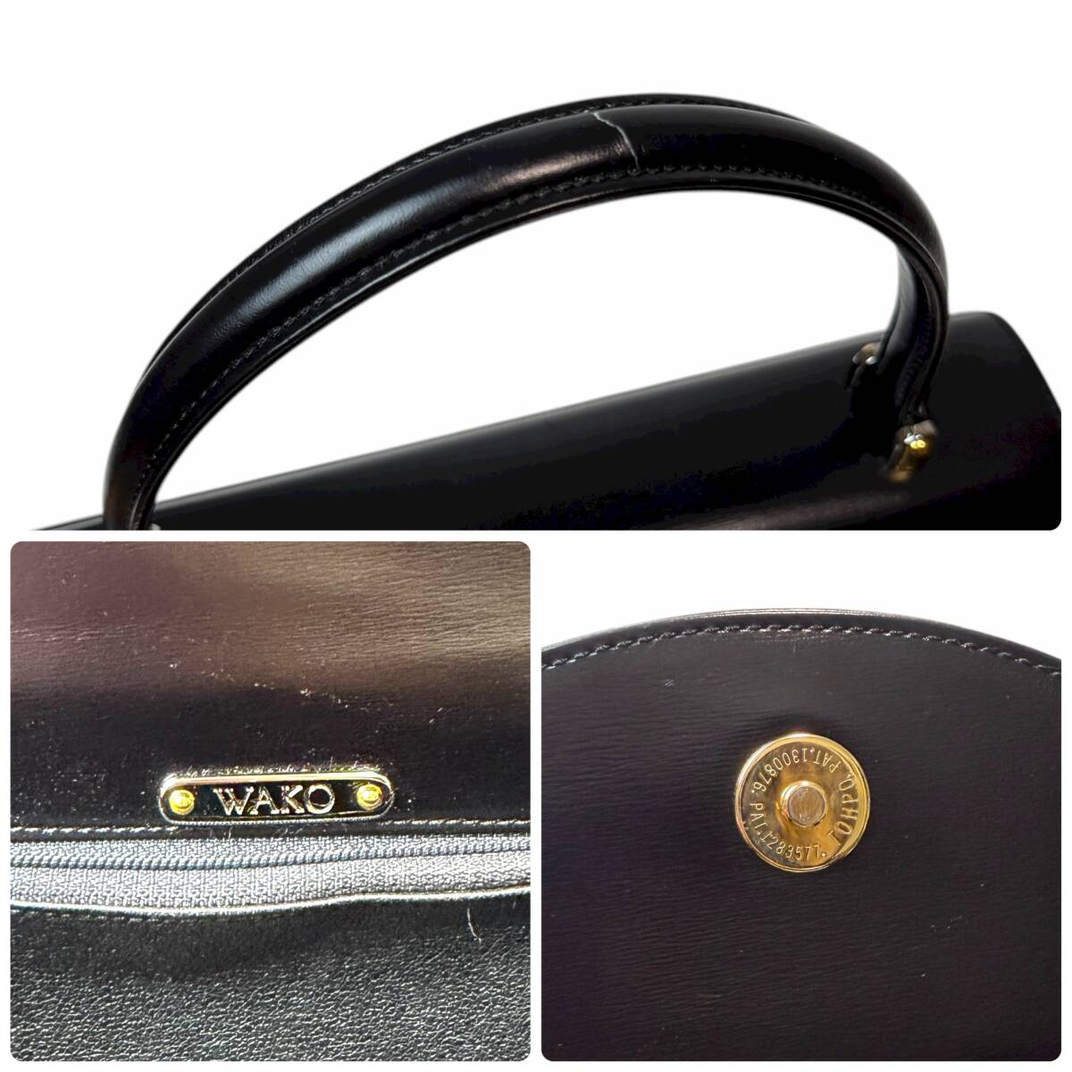 ほぼ未使用 WAKO 3150 ハンドバッグ ワコウ レザー トップハンドル 本革 ブラック 黒 フォーマル 冠婚葬祭 手提げ 婦人鞄 ゴールド金具