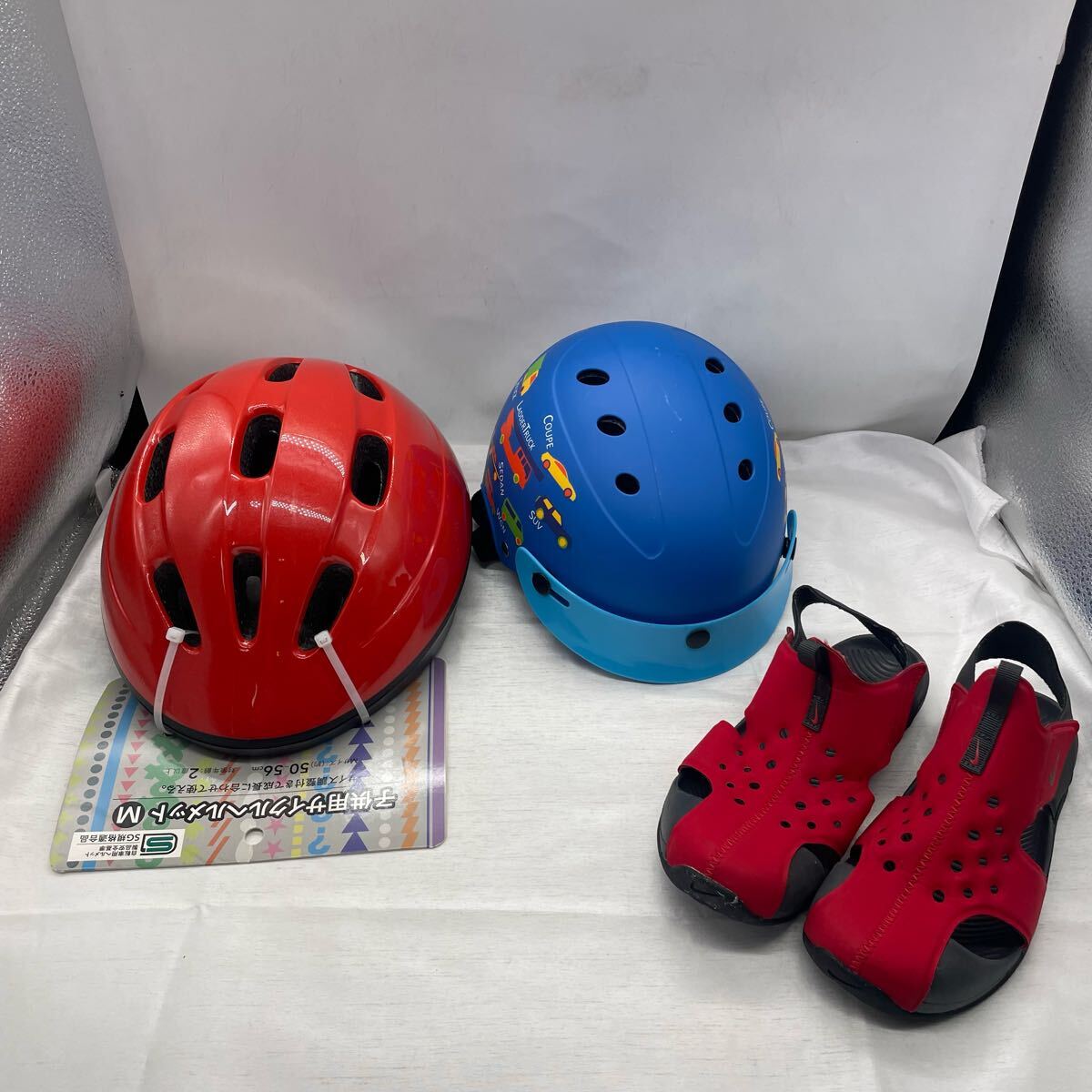 子供用の安全ヘルメット2点と、NIKE製のサンダル(22cm)をまとめて出品いたします。