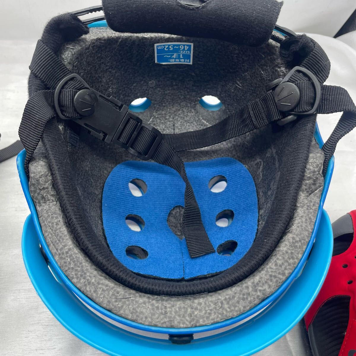 青色ヘルメット:中古、内側パッドあり、使用感少なめ