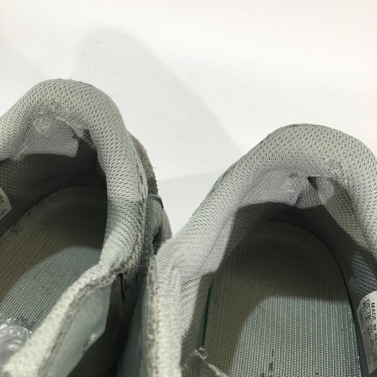 ・アッパーの状態:両足とも内側の履き口下の部分のレザーにスレ、表面剥げがございます。ライニング踵部分がスレて生地が薄くなっています。その他スレ、薄汚れ、履きジワがございます。