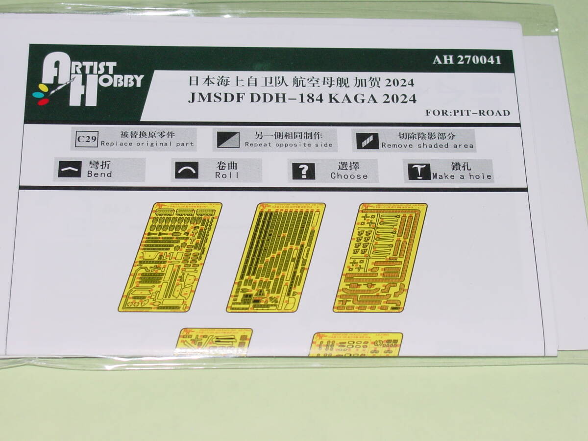 1/700 アーティストホビー (ARTIST HOBBY) AHLAH270041 日本国 海上自衛隊 航空母艦 「海上自衛隊 DDH-184 護衛艦 かが エッチングパーツセット (ピットロード用)」、開始価格で即決いたします。エッチング5枚組。ピットロードの1/700  J108 「海上自衛隊  護衛艦  DDH-184 かが 2024 (STOVL 戦闘機搭載 第1次改装時」専用。未開封の新品ですが完璧な新品状態を期待される方、神経質な方は入札をご遠慮下さい。発送方法は郵便局のゆうパケット(追跡有り・ポスト投函・輸送中の事故保証無し)、宅配便(佐川急便・ヤマト運輸の宅急便コンパクト・ゆうパック、いずれも追跡有り・対面手渡し・事故補償有り)からお選びいただき、お知らせ下さい。各発送方法の送料は自己紹介をご覧下さい。よろしくお願いいたします。