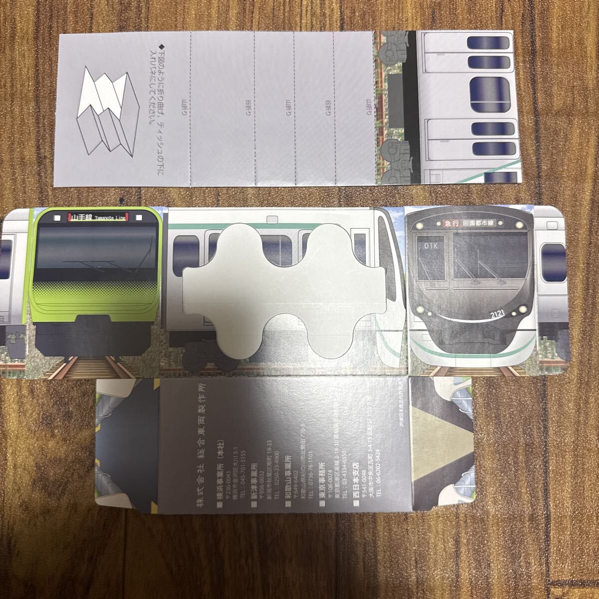 【商品の説明】*総合車両製作所(J-TREC)の「sustina ノベルティセット」**で、山手線田園都市線などの車両をモチーフにしたペーパークラフトキット