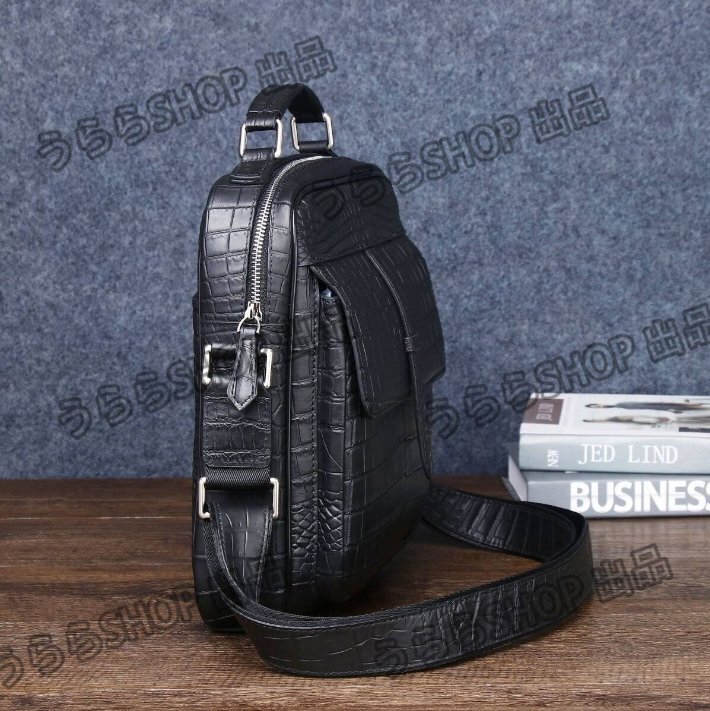 マット仕上げ クロコダイル本革 ワニ革 メンズ ショルダーバッグ 肩掛け メッセンジャーバッグ 斜めがけ 腹部革 センター取り xhw0165