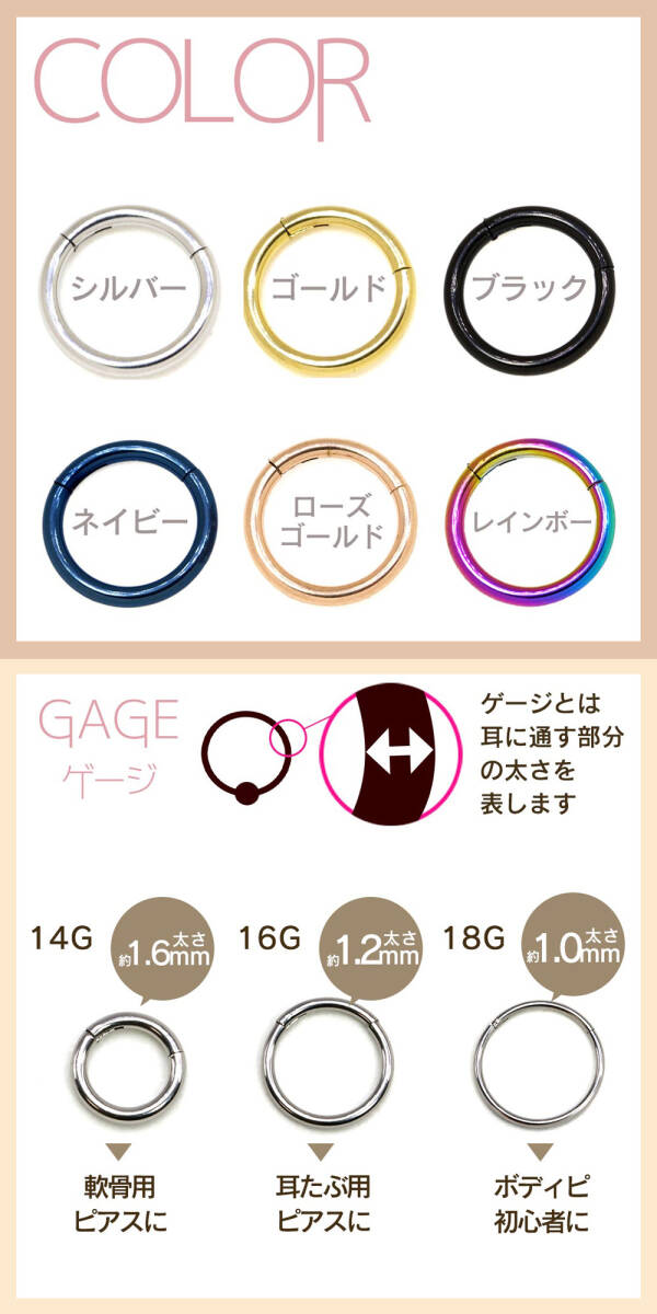 ボディピアス 18G 16G 14G ピアス 軟骨 金属アレルギー レディース メンズ つけっぱなし サージカルステンレス 耳 キャッチレス フープピアス ファーストピアス セカンドピアス トラガス ヘリックス セグメントリング 軟骨ピアス PVDコーティング シンプル ワンタッチ 片耳用