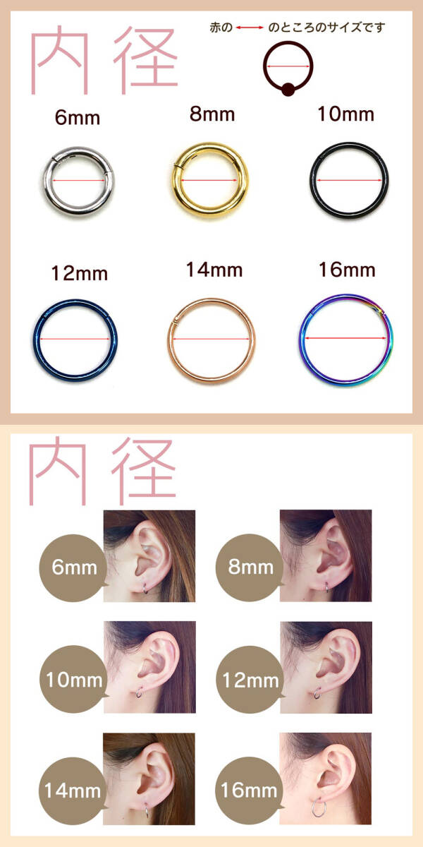 耳たぶ・イヤーロブ・軟骨・トラガス・ヘリックス・アイブロウ・ダイス・オービタル・コンク・セプタム・スクランパー・リップ・くちピアス・タンエッジ・タンウェブなど様々な部位に着用出来ます。