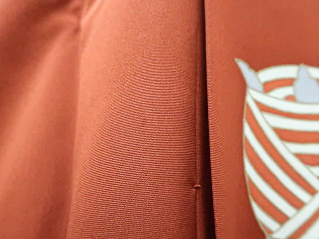 リサイクル商品のため、右堅衿横に小さなシミがございますがご着用いただけると存じます。 地色は赤茶です。 1枚目の画像が近いお色かと思われます。 素材は正絹です。 日本国内から発送いたしております。 発送後は追跡番号をお知らせいたします。 スタッフによる手作業での検品採寸済み。 |