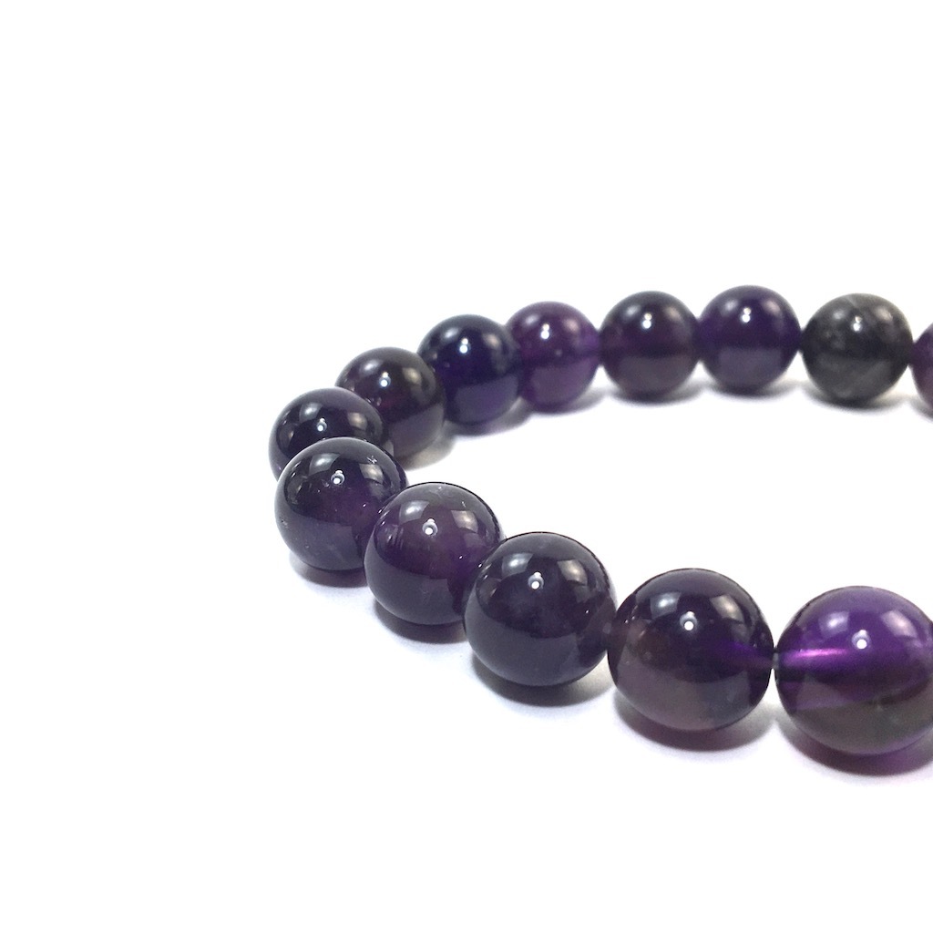 こちらは、アメジストの10mm玉を使用したパワーストーンブレスレットです。シンプルなデザインですのでどんなコーディネートとも合わせ易いブレスレットです。サイズは内径約17cmです。(サイズ変更の場合は取引ナビにてご連絡をお願いします。) 数に限りがございますので気になる方はお早めにどうぞ。