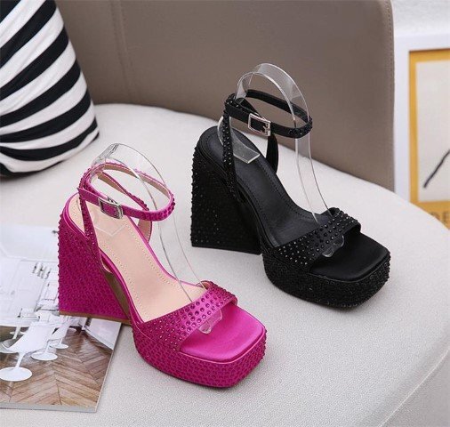 太いヒール ハイヒール 大きいサイズ 38 ローズレッド
