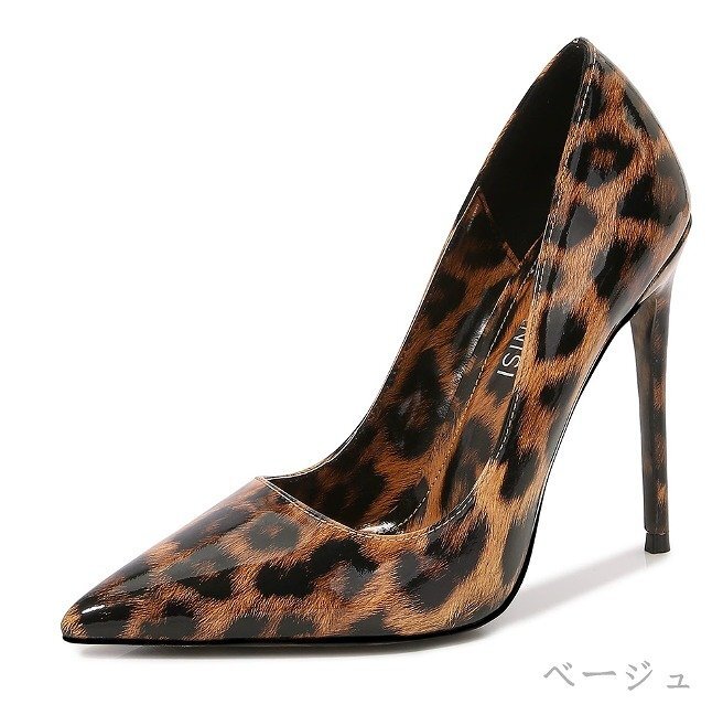 ハイヒールシューズ オフィス とんがりトゥ ピンヒール バイカラー レオパード柄 シンプル 【38】23.5~24cm ホワイト