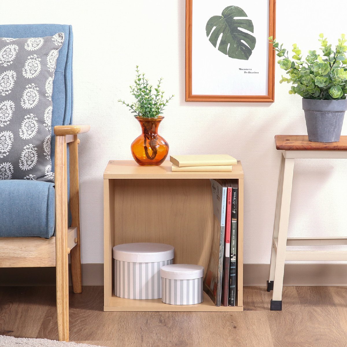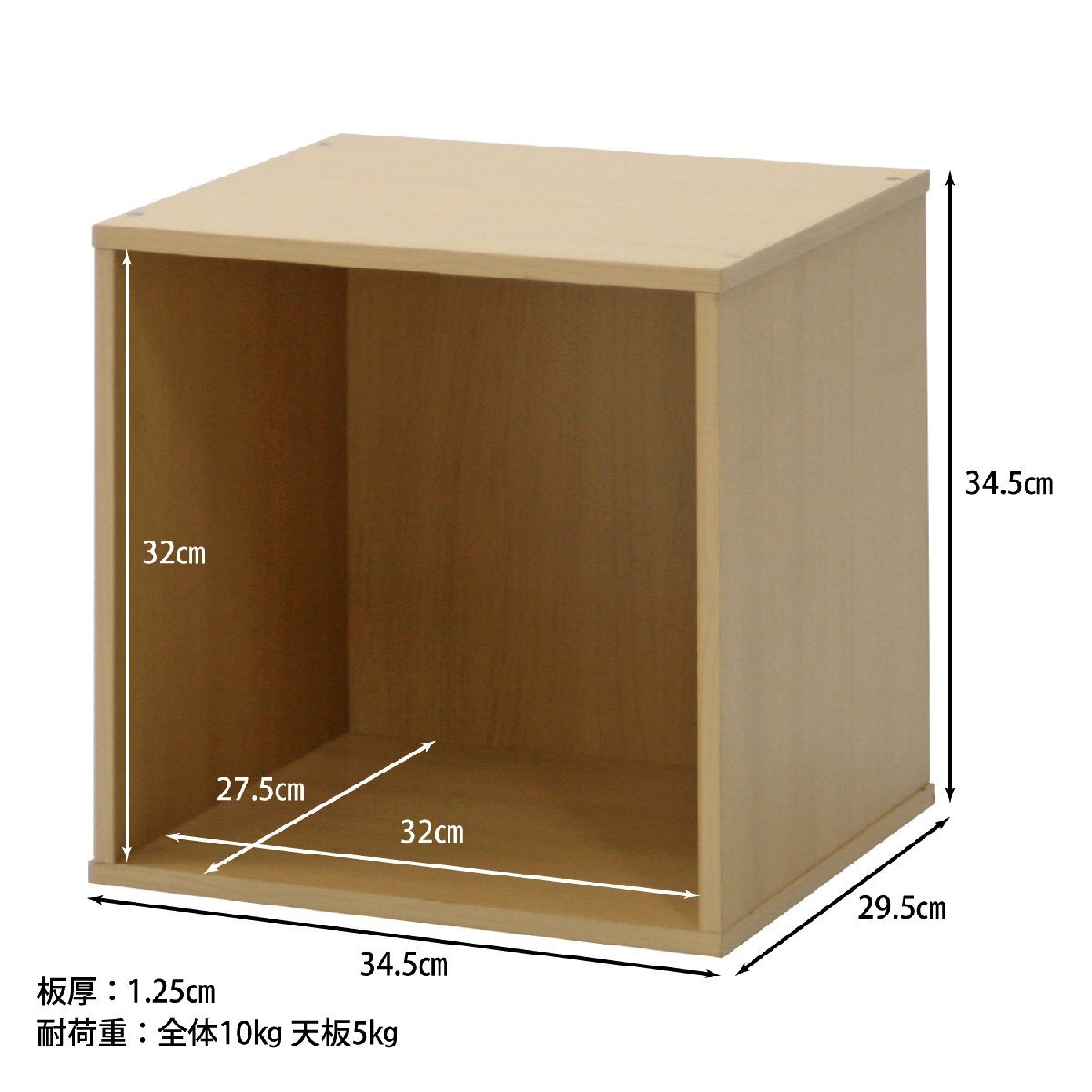 サイズ | 全体:幅345 × 奥行295 × 高さ345mm × 2個 耐荷重(全体):10kg 耐荷重(天板):5kg 板厚:12mm 内寸:320x277x320mm |
