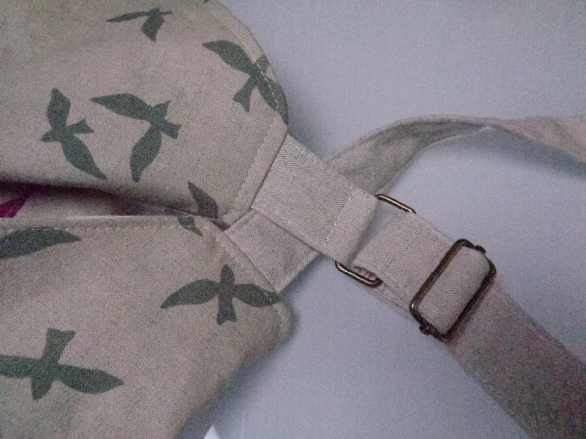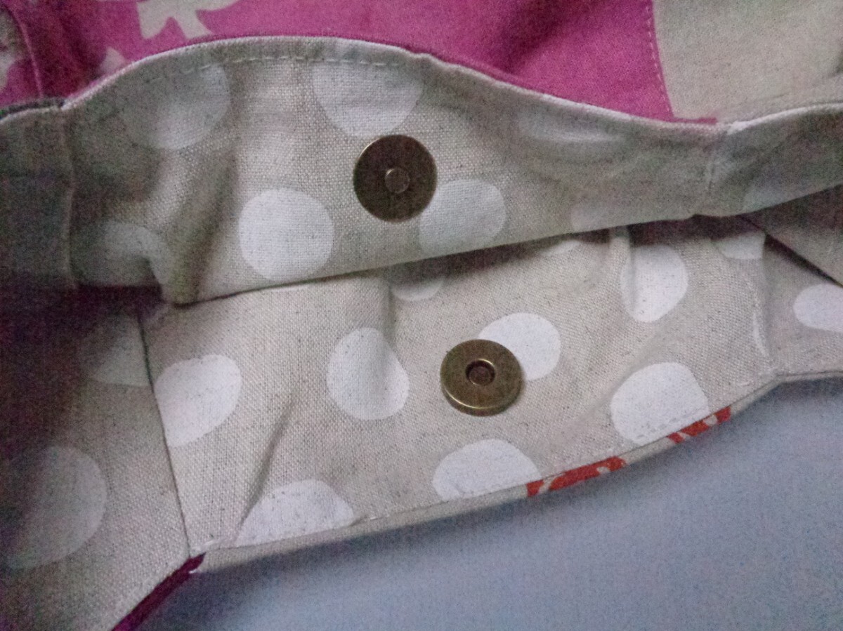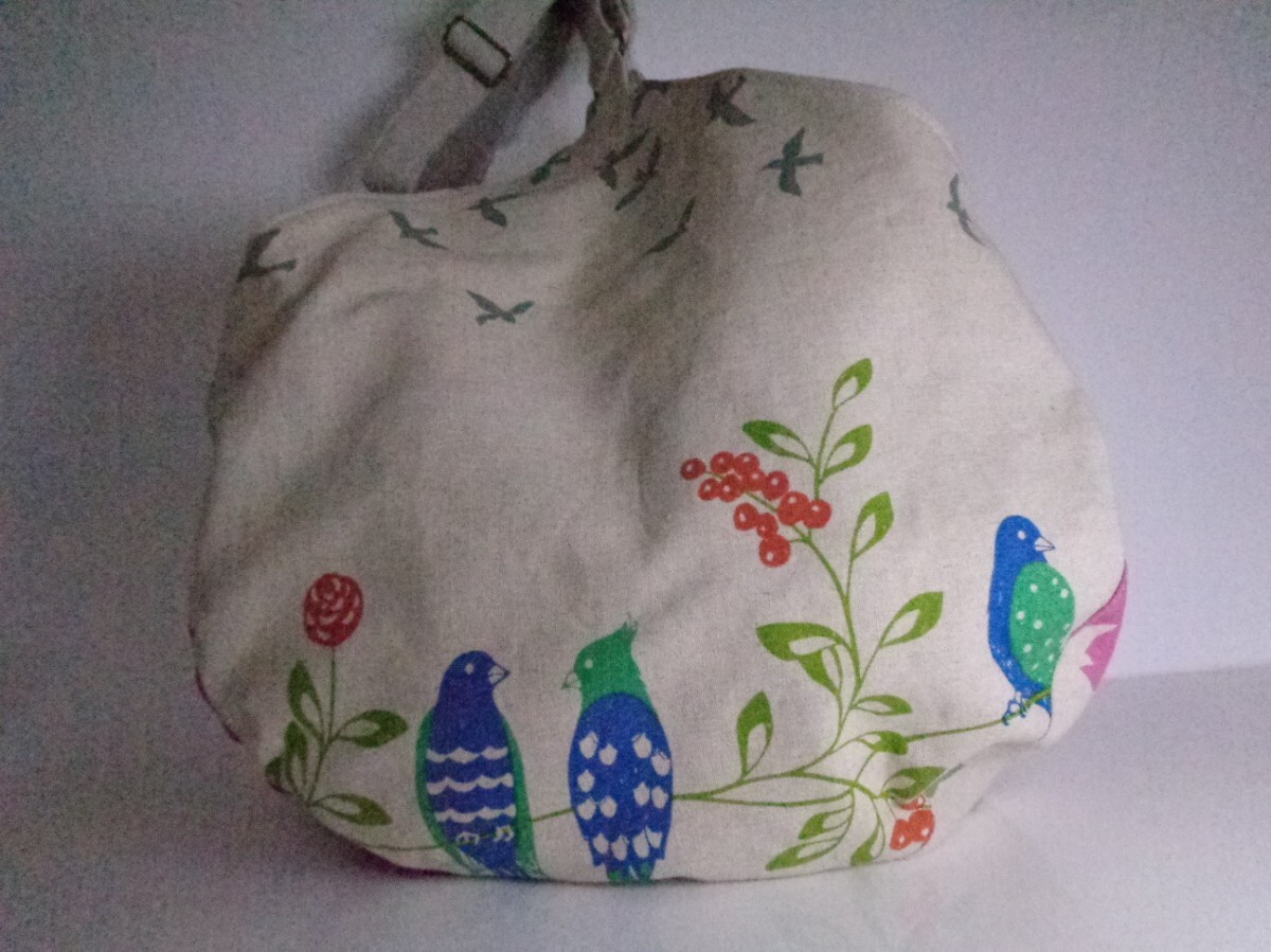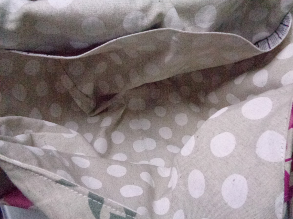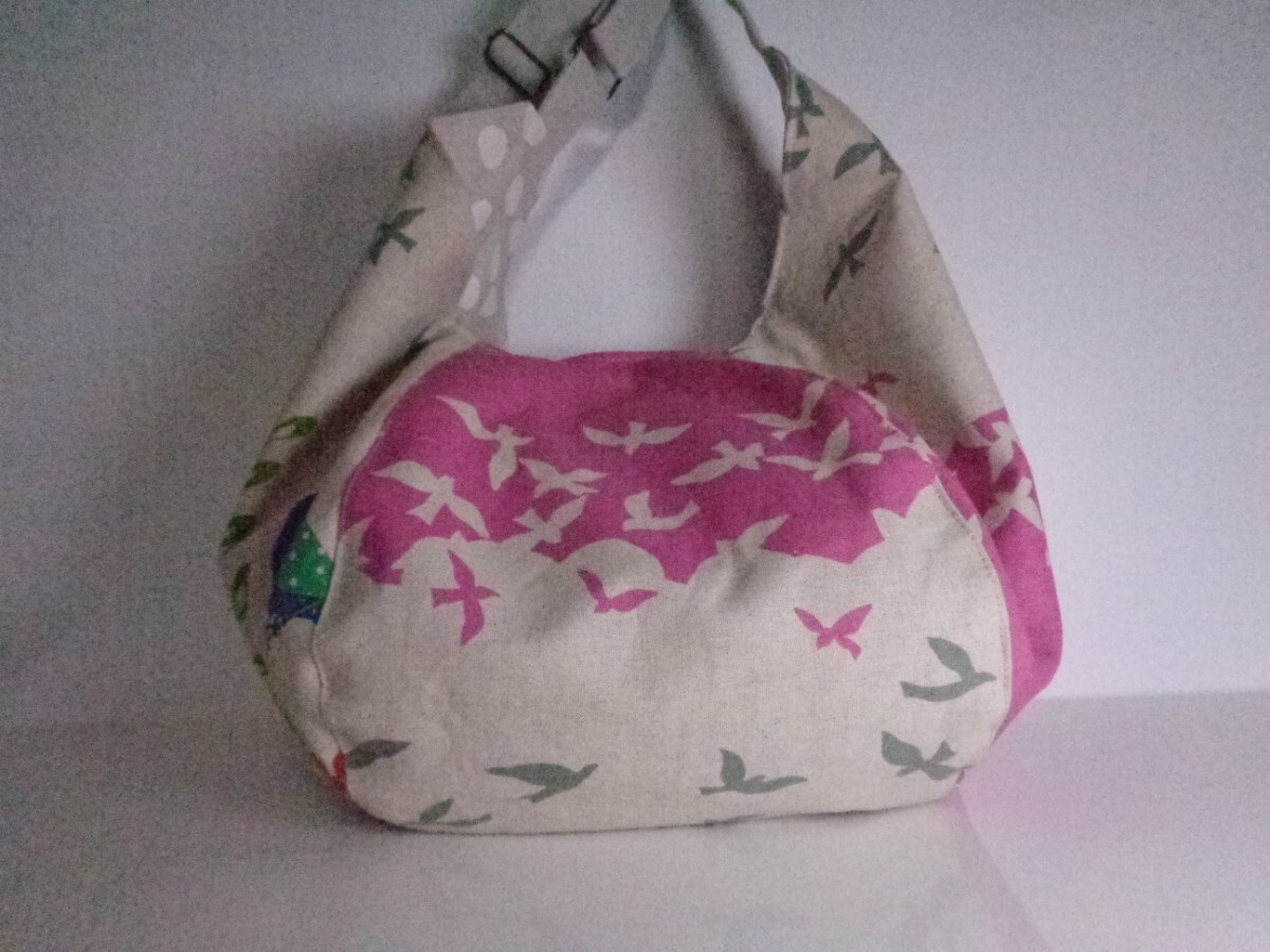 沢山の品の中から、ご覧いただきありがとうございます。 お店には売っていない、ハンドメイドの温かさをお届け出来ましたら、幸いです。 自由に飛ぶ鳥たちの綺麗な生地で、2Wayバッグを作りました。 ♪サイズ 深さ・・・浅いところで36 深いところで40 横・・・ペタンと置いて入り口位置で47 マチ・・・14〜20 肩紐・・・最長で90 ♪素材 表・・・コットンリネンキャンバス、接着芯、角カン、 送りカン 内側・・・コットンリネンキャンバス、マグネットボタン、ボタン位置に接着芯と力布 コットンリネンキャンバスには接着芯を貼り、しっかりとさせました。深さのあるバッグです。ペットボトルやランチボックス、長財布など沢山の荷物が収まります。 面ごとに模様が違い、個性的なバッグに仕上がりました。 内側は、水玉模様のしっかりとしたコットンリネンキャンバスで。500mlのペットボトルも入る、2部屋のポケットを付けました。マグネットボタンで、入り口は留められます。 毎日の小物、バッグを製作しています。一針一針、丁寧に縫いました。 どうぞよろしくお願いいたします。 ★リネン、コットンは天然素材ならではのネップ、スラブ等ございます。 ★雨、汗、摩擦などで、色落ちする場合がございます。 ★生地の色、厚さに合わせなるべく糸を変えアイロンをこまめに掛けながら、職業用ミシンで丁寧に製作しています。 | |||
