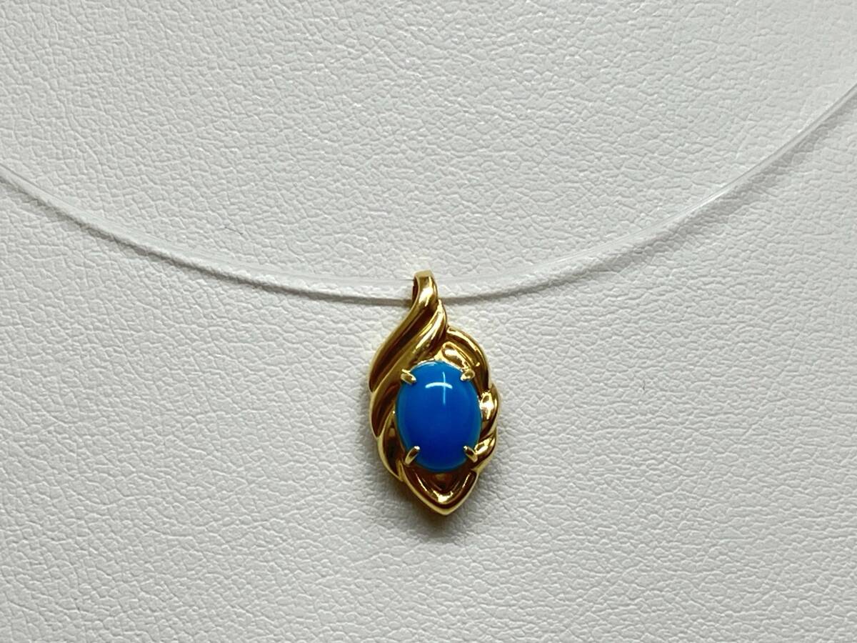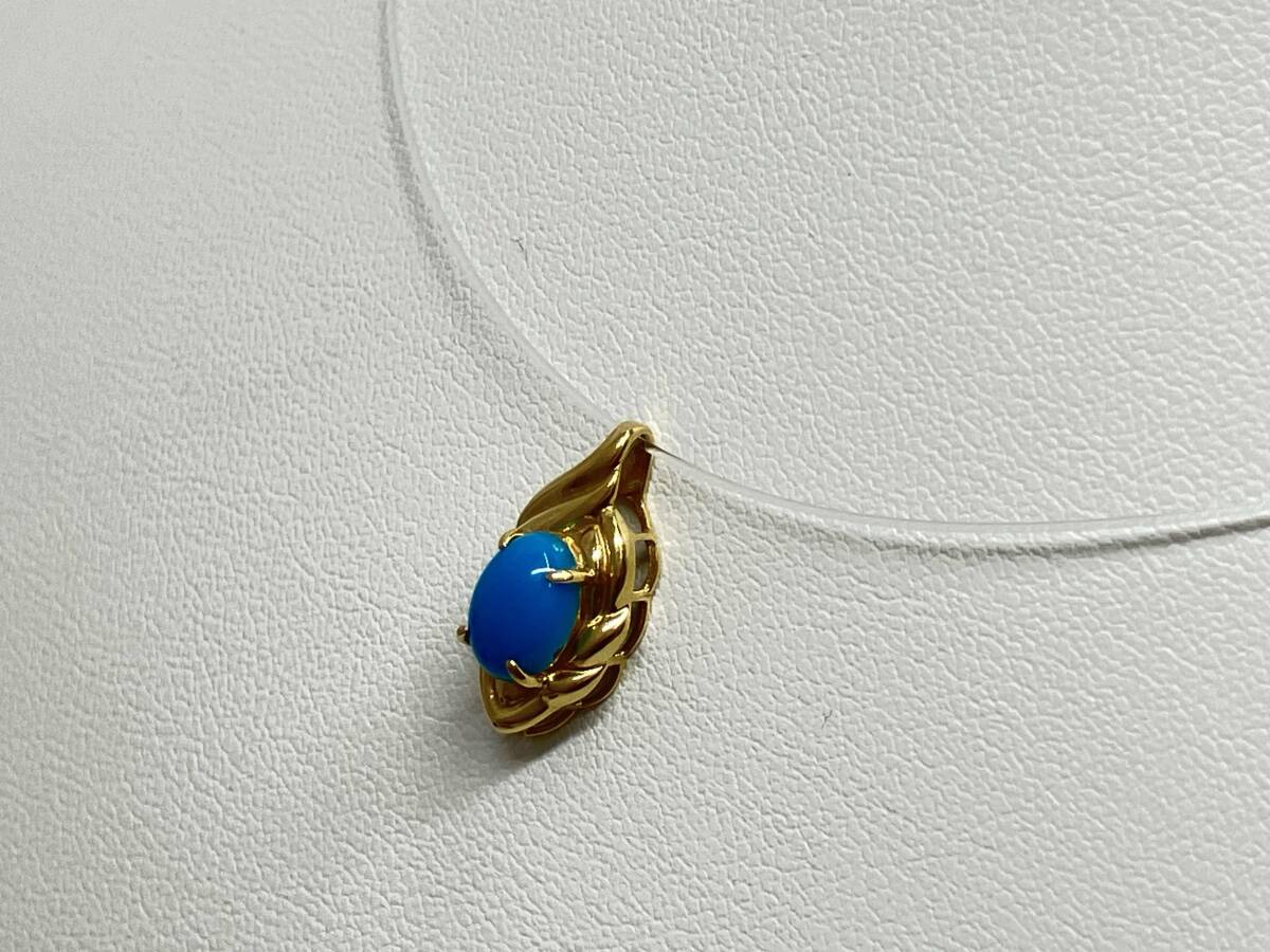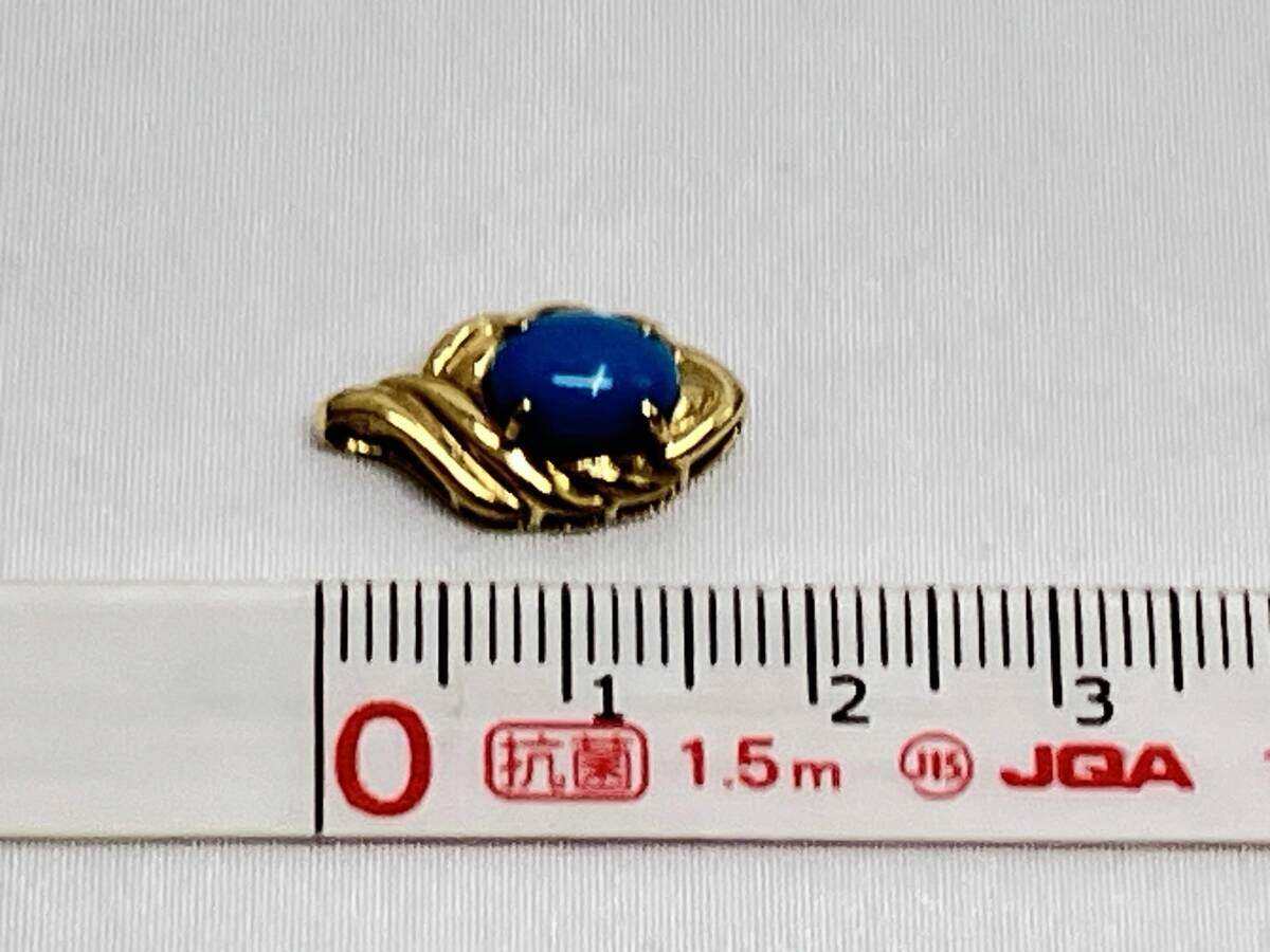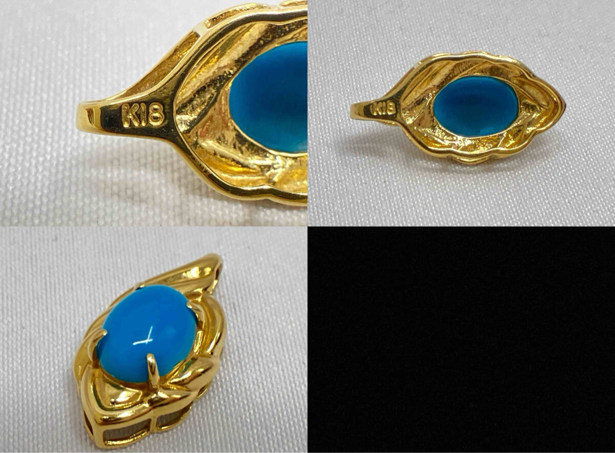 | 画像のものがすべてです。 素材:K18 宝石:トルコ石 品名:ペンダントトップ サイズ:約縦18mm、横9.6mm バチカン内径:約縦4.8mm、横2.4mm 総重量:約1.3g サイズはスタッフが手計測しているため多少の誤差が出る場合がございます。ご了承下さい。 | ||||||