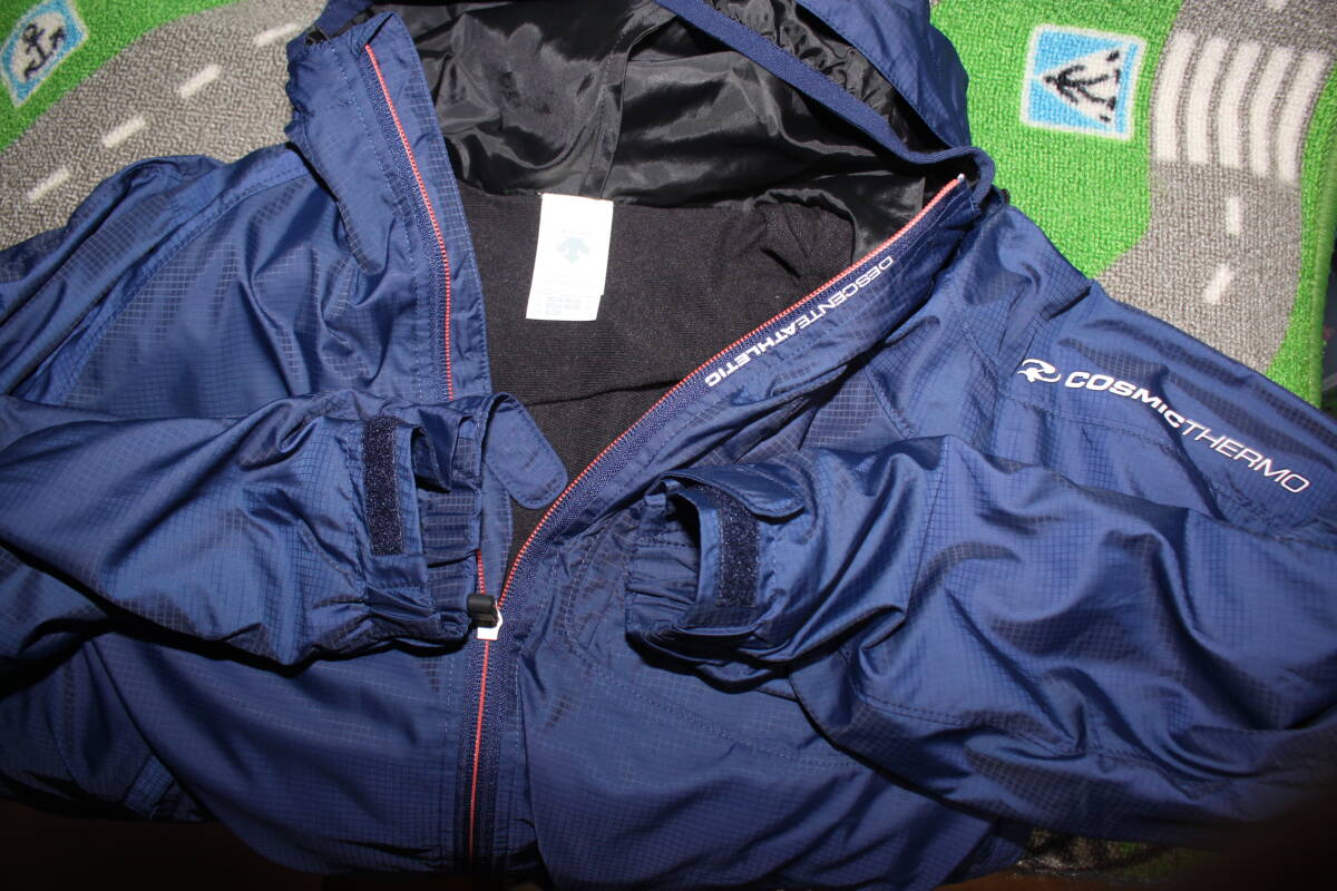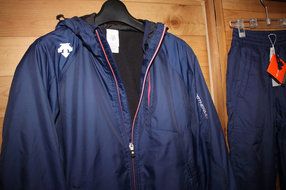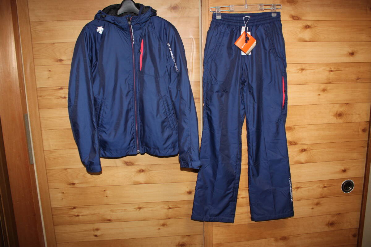 パンツ未使用 デサントDescente コズミックサーモ裏地付きウインドブレーカー上下セット ジャケットL パンツM 紺 送料無料