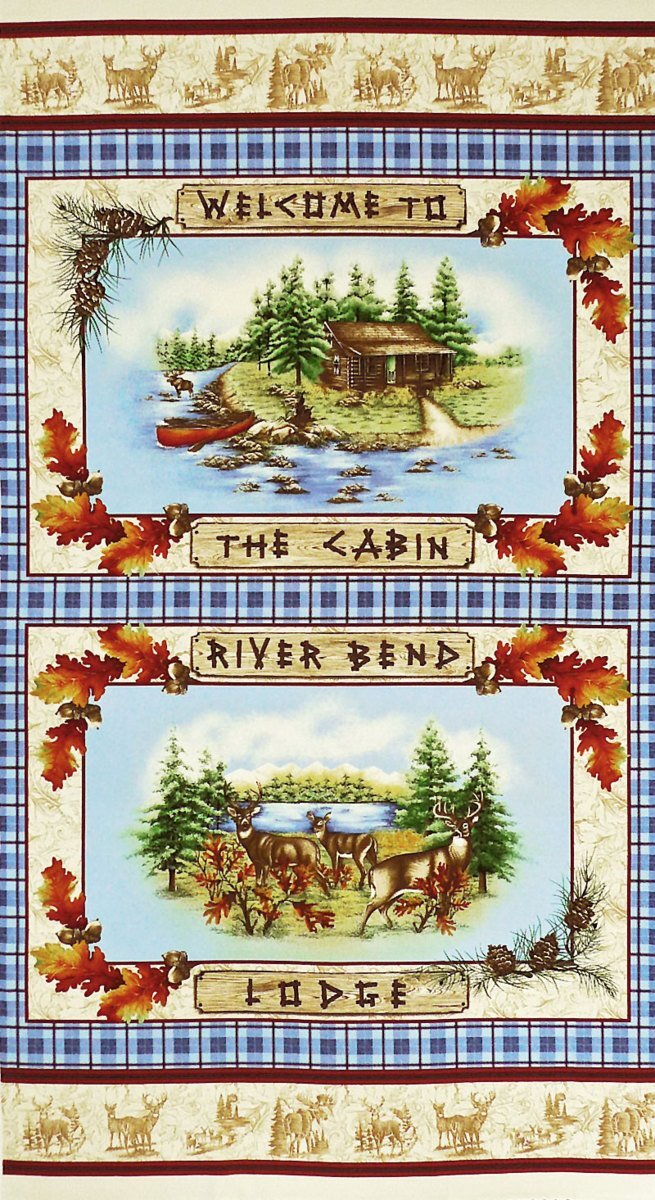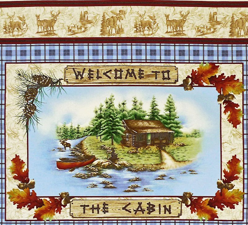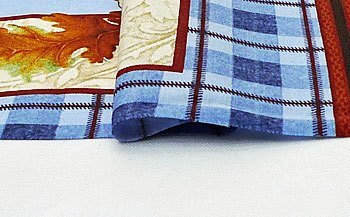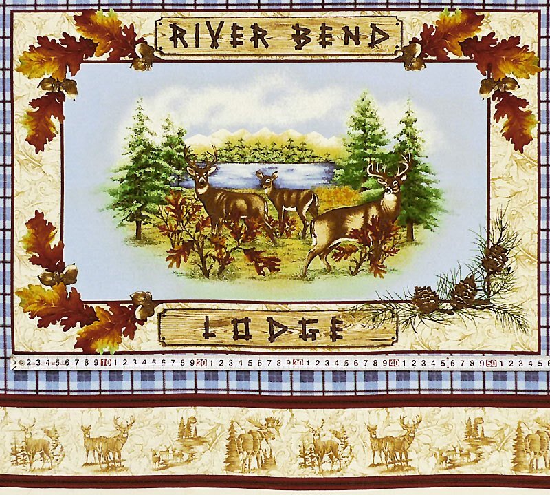パネル2枚をチェックが取り囲み、上下にシカを描いたボーダーで挟んでいます。