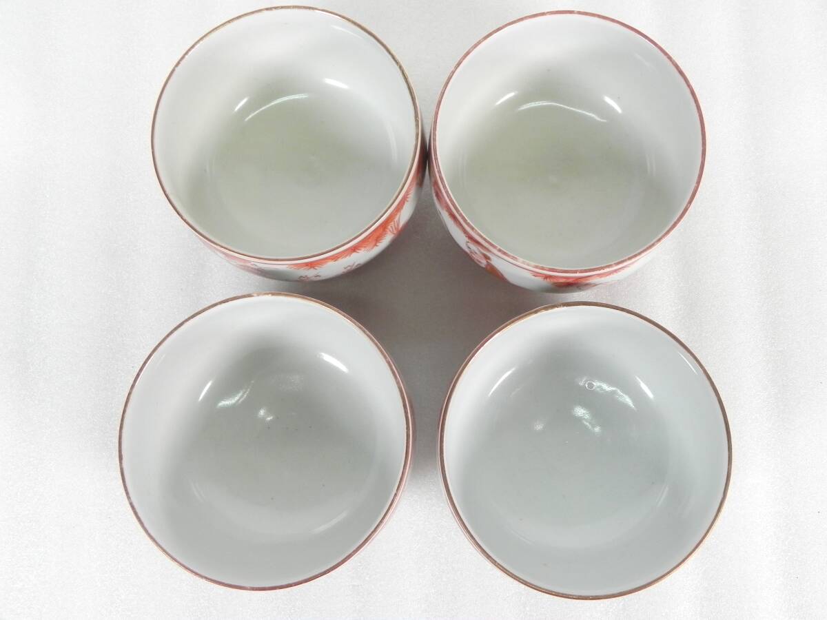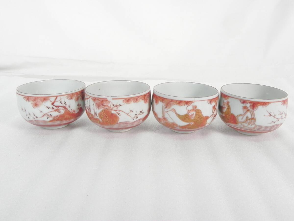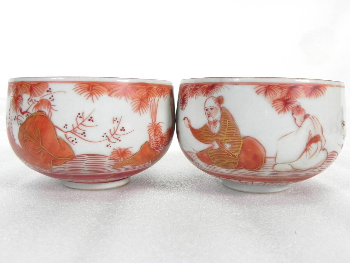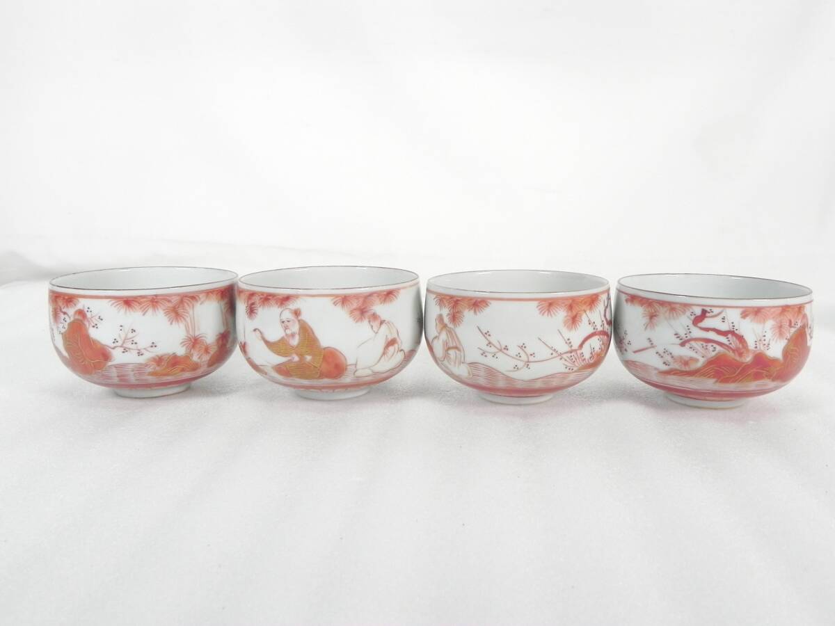 [R4909]九谷焼 茶碗 赤絵 金彩 6客 人物文 茶道具 煎茶道具 賢人 仙人