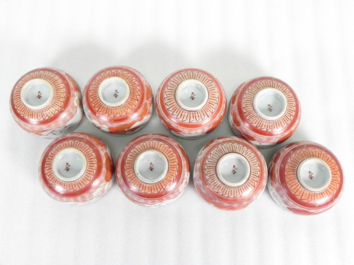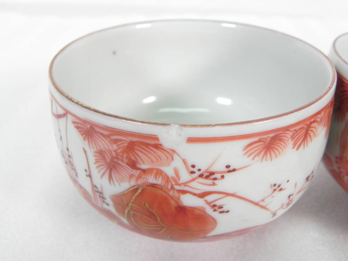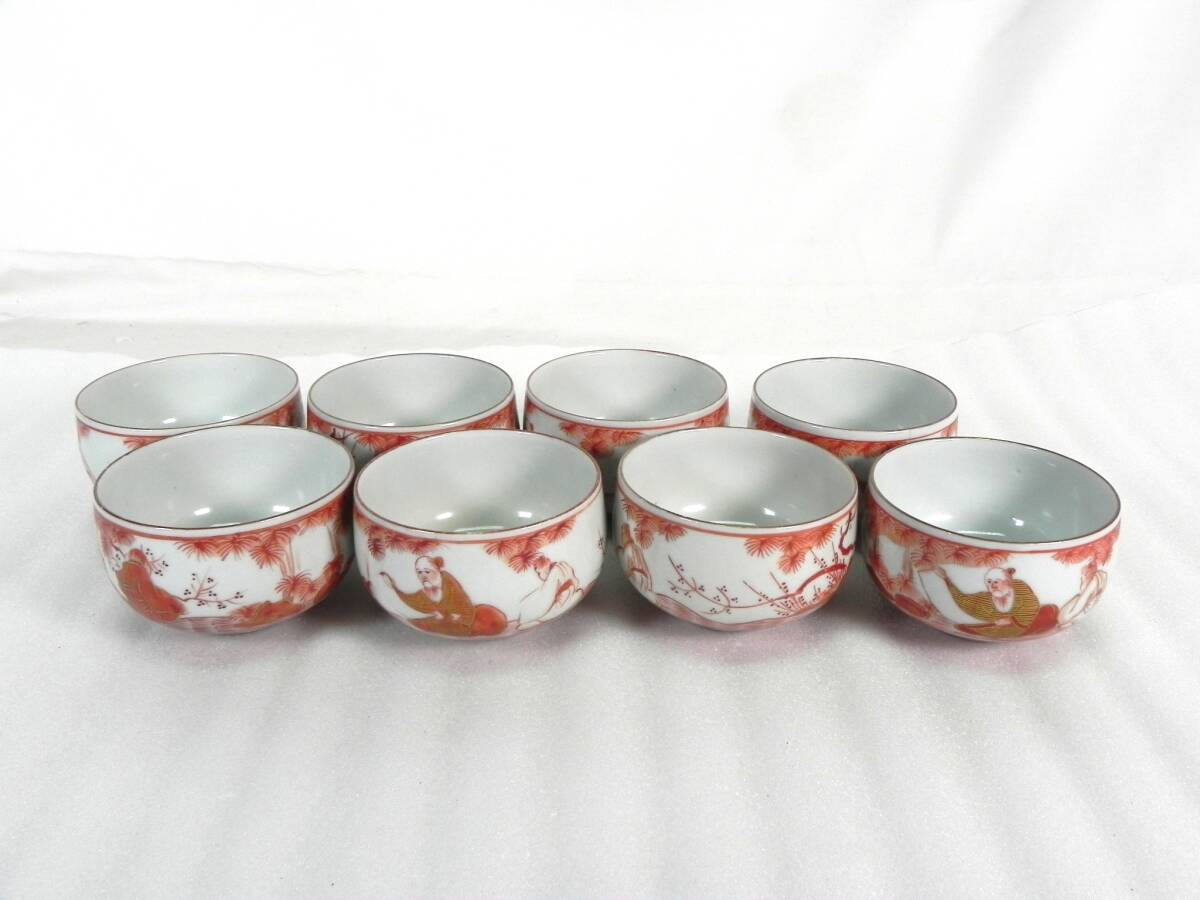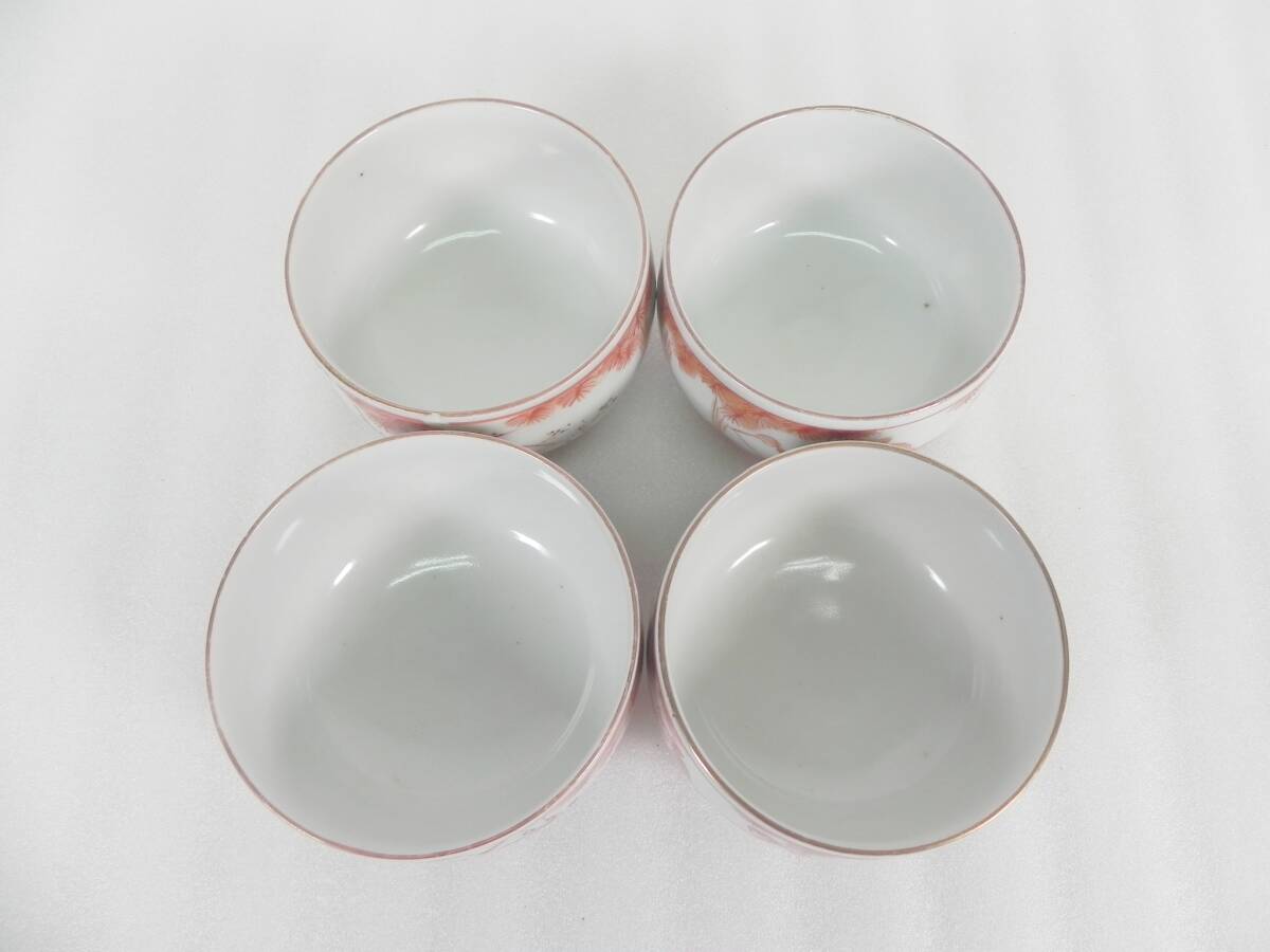 [R4909]九谷焼 茶碗 赤絵 金彩 6客 人物文 茶道具 煎茶道具 賢人 仙人