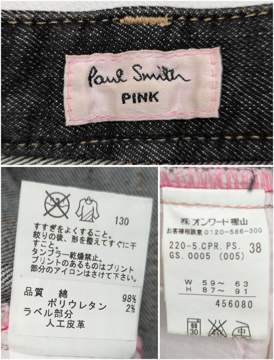中古 PaulSmith PINK ポールスミス デニム パンツ レディース 38 黒 ステッチ オンワード