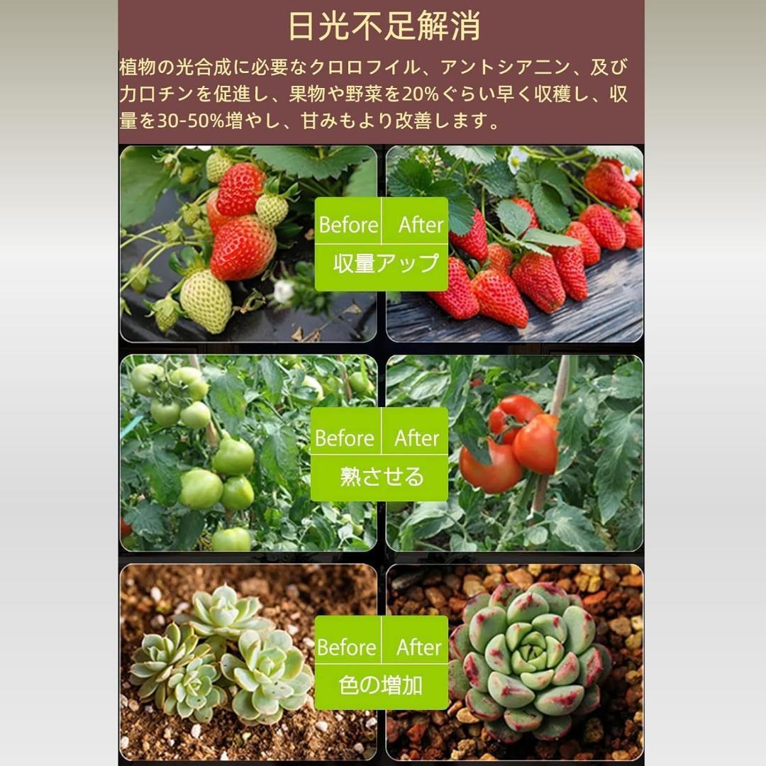 【太陽光に近い明るさと波長で効率的な栽培を実現】自然光は太陽光の可視光線7波長を連続的に放射します。赤色の波長は光合成を促進し、植物の成長を促します。シアン色の波長は葉や茎の発育に効果的です。PPFD値656、照度39,600(LED素子から約40cm)の優れた性能を持つこのLEDライトは、屋内に屋外のような鮮やかな栽培環境を作り出します。最大照度は1,000,000を超え、冬の弱い太陽光を好む植物でも栽培ライトの近くに置くことができ、季節や天候の影響を受けにくい健康な植物を確保します。