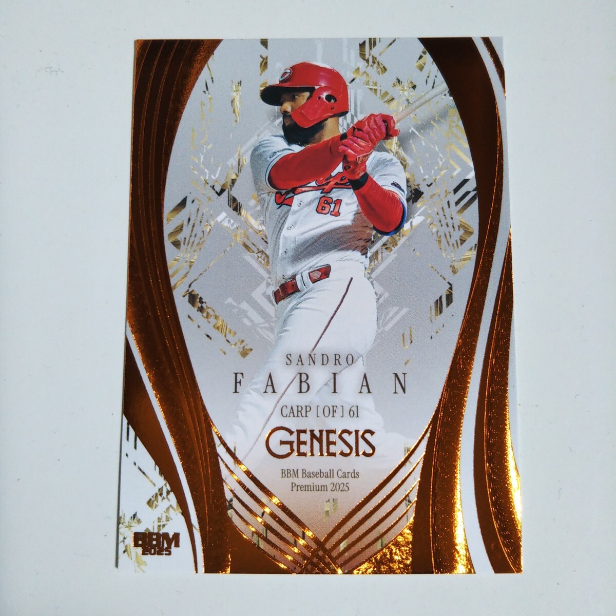 BBM2025・GENESIS、広島東洋カープ、サンドロ・ファビアンの50枚限定オレンジ箔版パラレル・レギュラーカードです。