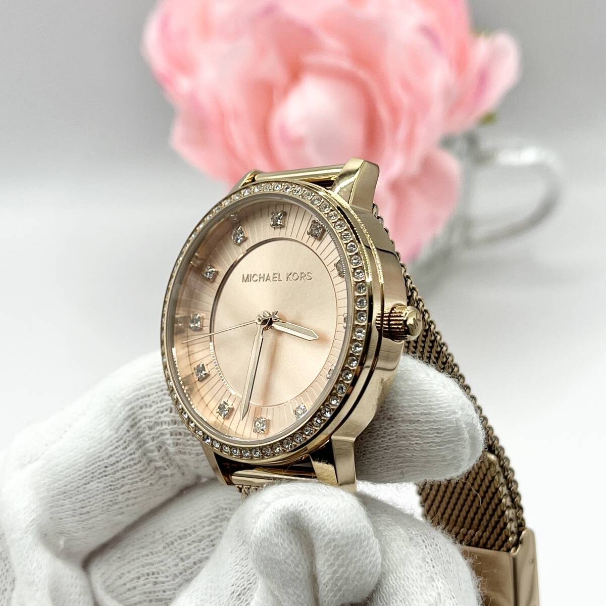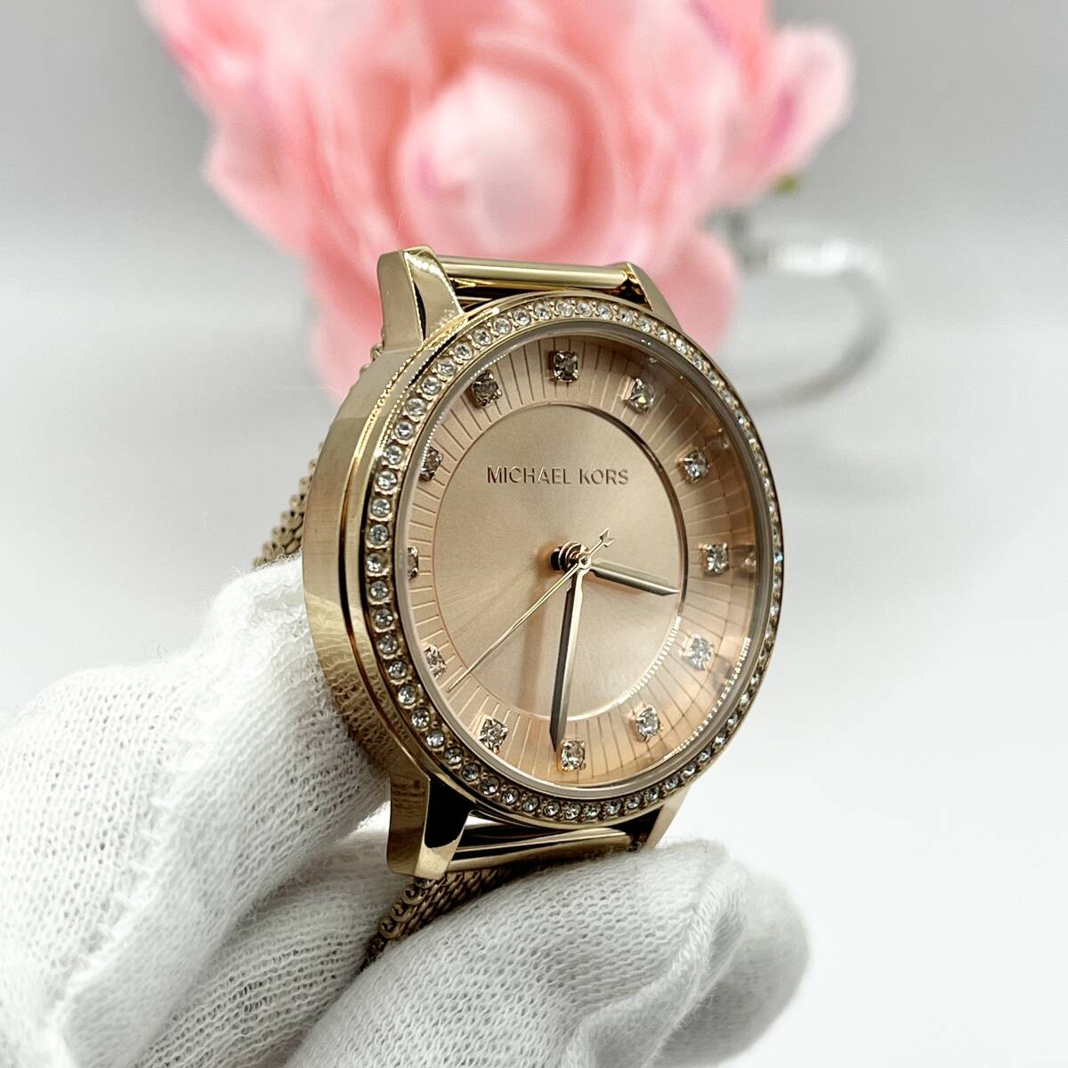 【1円スタート】《稼働品》MICHAEL KORS★マイケルコース★クォーツ 腕時計★ゴールド★レディース★ストーン★管理577