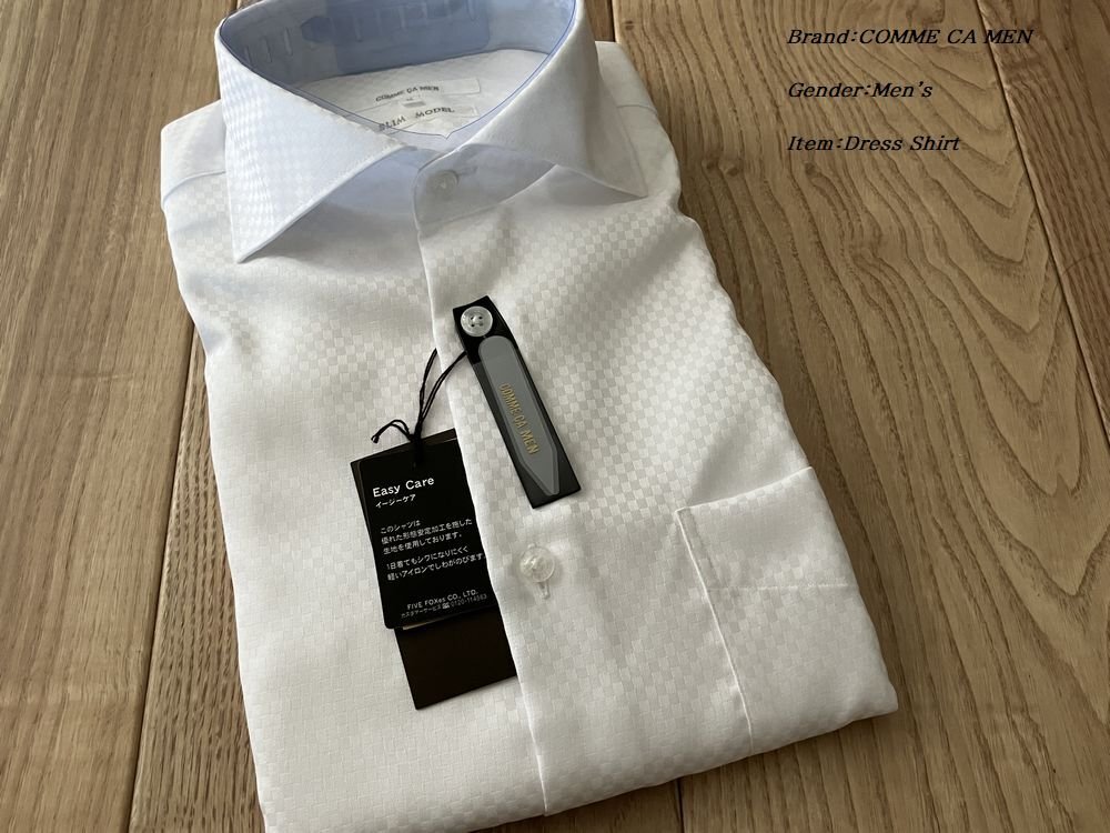 新品サンプル COMME CA MEN コムサメン 人気の市松柄 コットン100% サテン長袖ドレスシャツ 01ホワイト Mサイズ 08HK01 定価16,500円