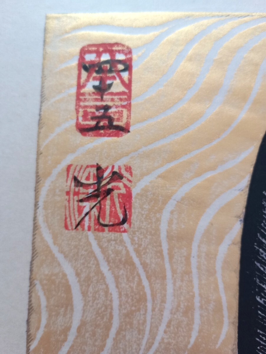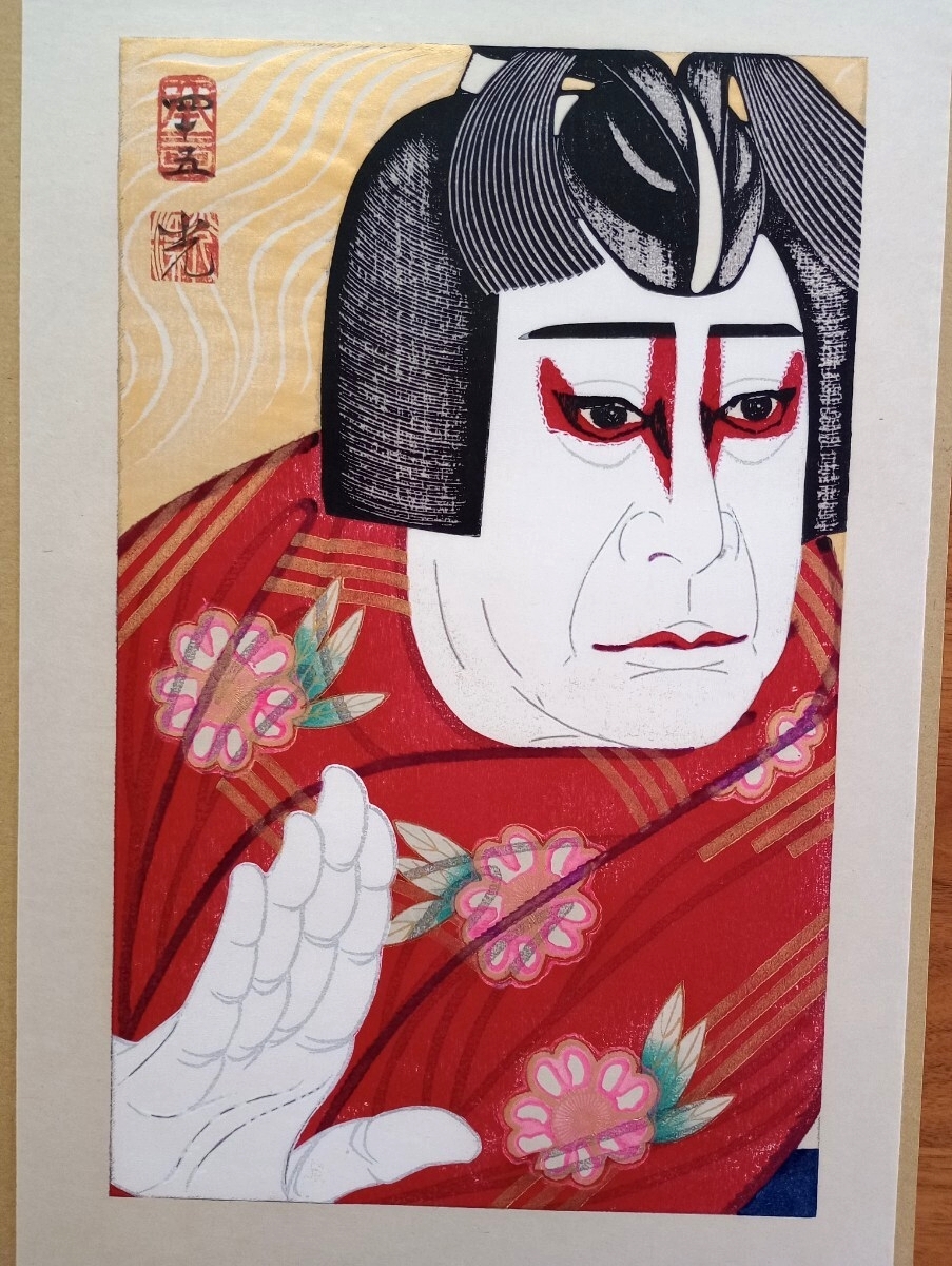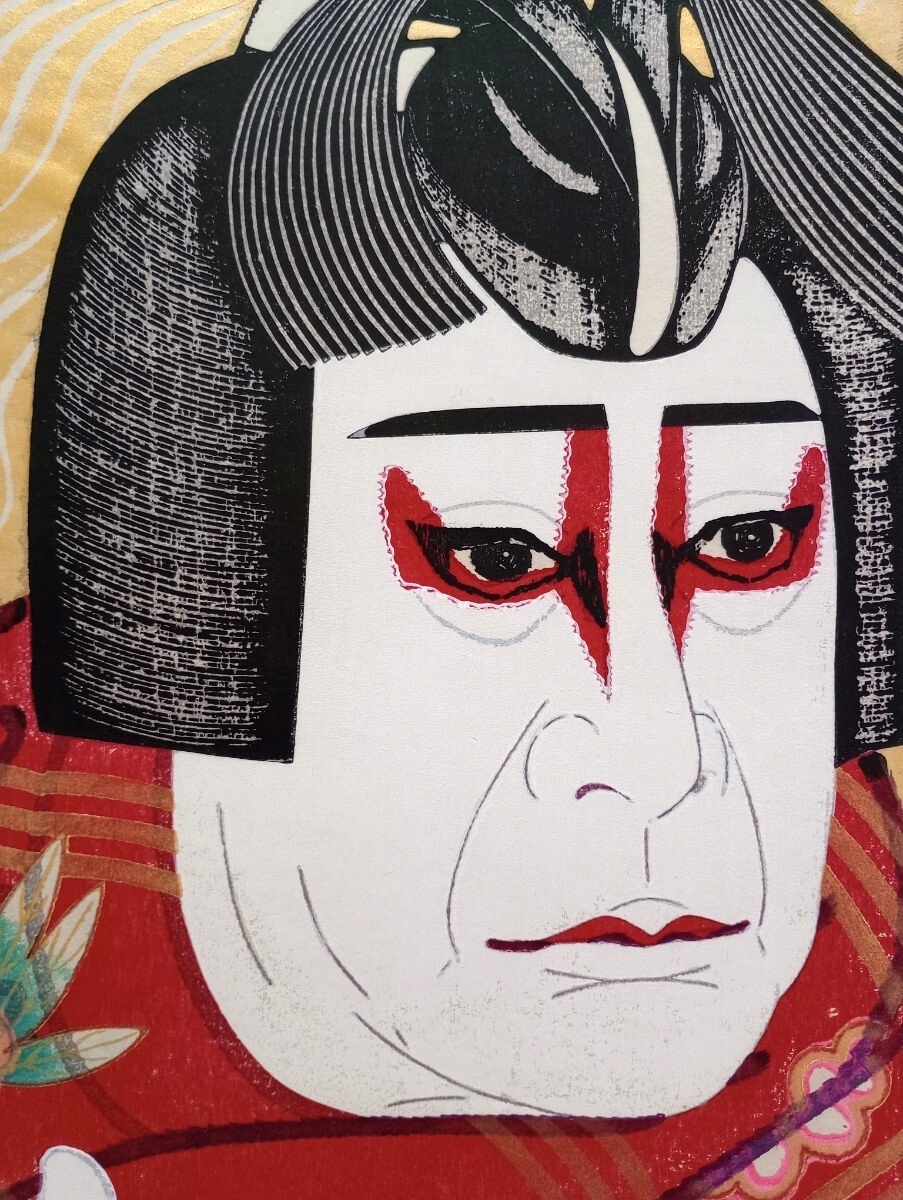 【真作】作品番号 197 作品名 「車引」より七世尾上菊五郎の桜丸 限定部数 63 制作年 2000/11 使用印 六十三品(印43)・光溪(印42) 紙寸法 46.3×31.0cm・(絵画部分)40.0×25.0cm 使用紙 雁皮紙(高知県産) 使用版木 朴 対象舞台 歌舞伎座「菅原伝授手習鑑」2000年3月 ■■返品返金について■■ ■こちらは真作ですが、万が一、公定鑑定人または公定鑑定機関により真作でないと判断された場合には、落札代金と送料を全額返金させていただきます。 ■該当商品の返送、鑑定書または作家の署名・捺印・日付の入った書面のご提出をお願いいたします。 (画廊・第三者・個人による鑑定は保証対象外となります。) ■返品に際しては、出品時の画像および発送時と同一の状態であることが条件となります No. 197 Title Onoe Kikugoro VII as Sakuramaru in Edition 63 Date 2000/11 Seal (Seal 43); (Seal 42) Dementions 46.3×31.0cm・(絵画部分)40.0×25.0cm Paper Ganpi paper (made in Kochi Prefecture) Woodblock Magnolia Obovata Subject performed at the Kabuki-za, 2000/3
