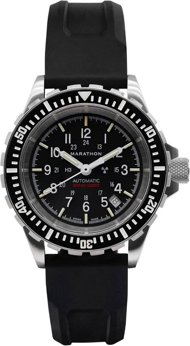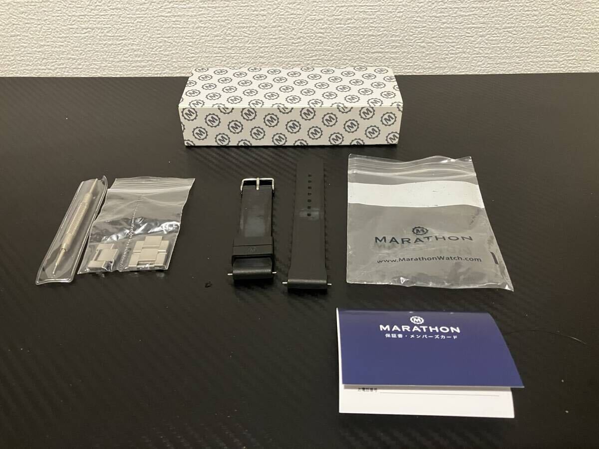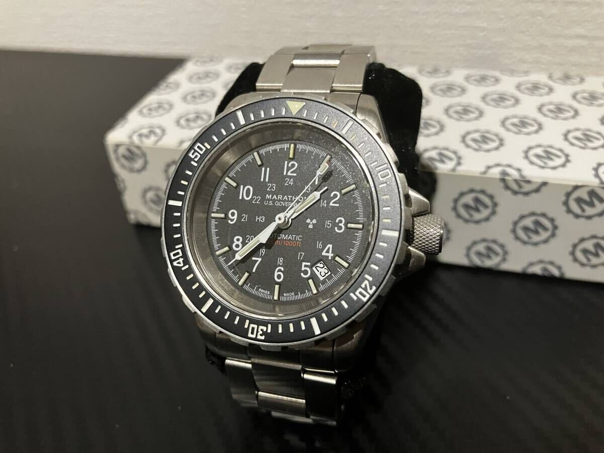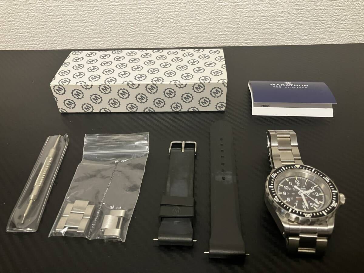 商品説明 | ■商品名■ MARATHON GSAR Automatic Divers 300M 316L 41mm ラバーベルト仕様を購入し、後からMARATHON 純正のブレスレットを追加購入しました。 現行品とはラバーベルトのデザインが少し違うかもしれません。 箱、説明書等 全て完備 ■状態■ 未使用品 動作確認済み 暗所ケース保管 ※写真 ラバーベルトは白っぽく映っていますが、ライトの反射です。 2018年 ヤフー通販サイト 正美堂購入 |