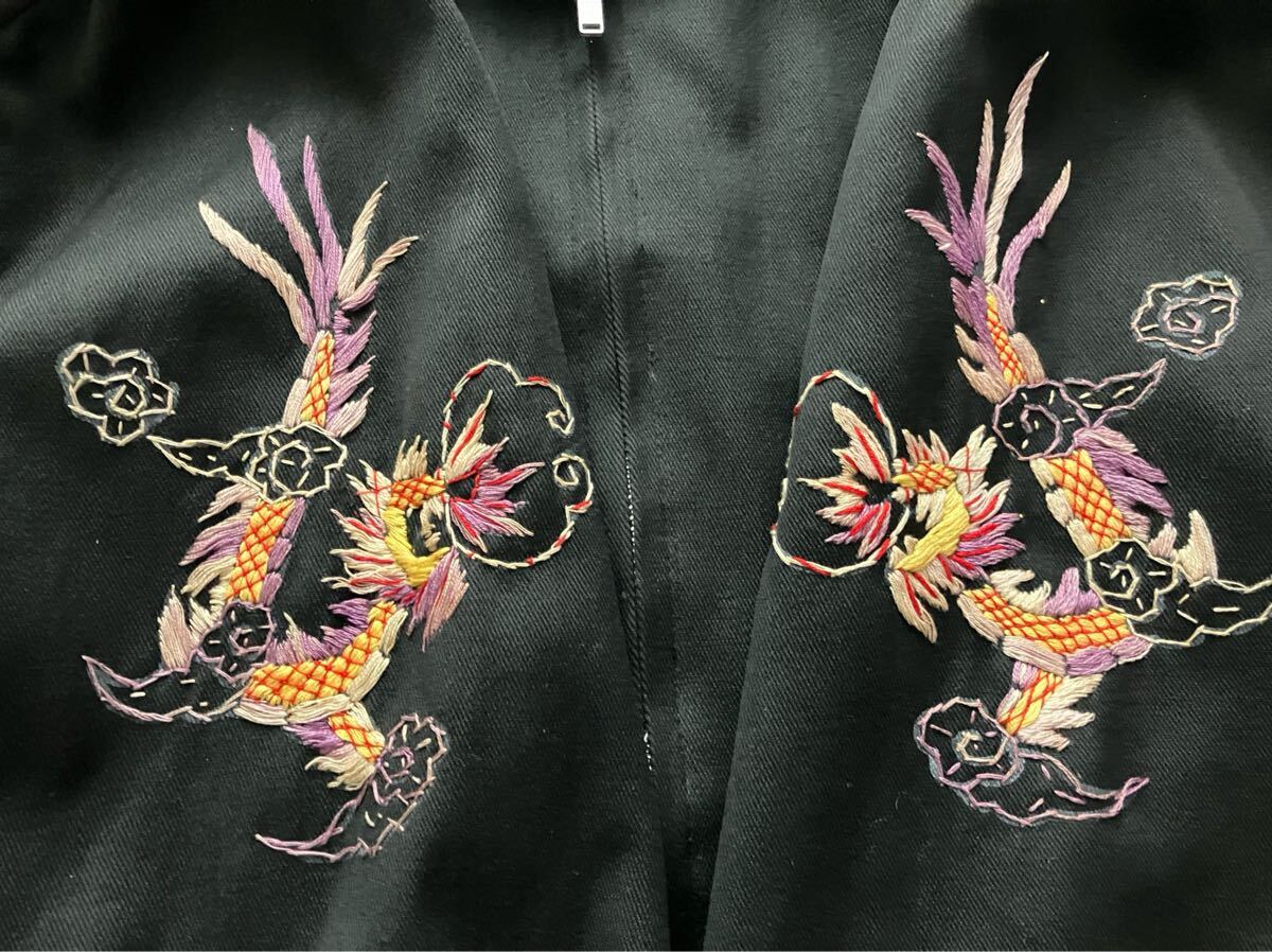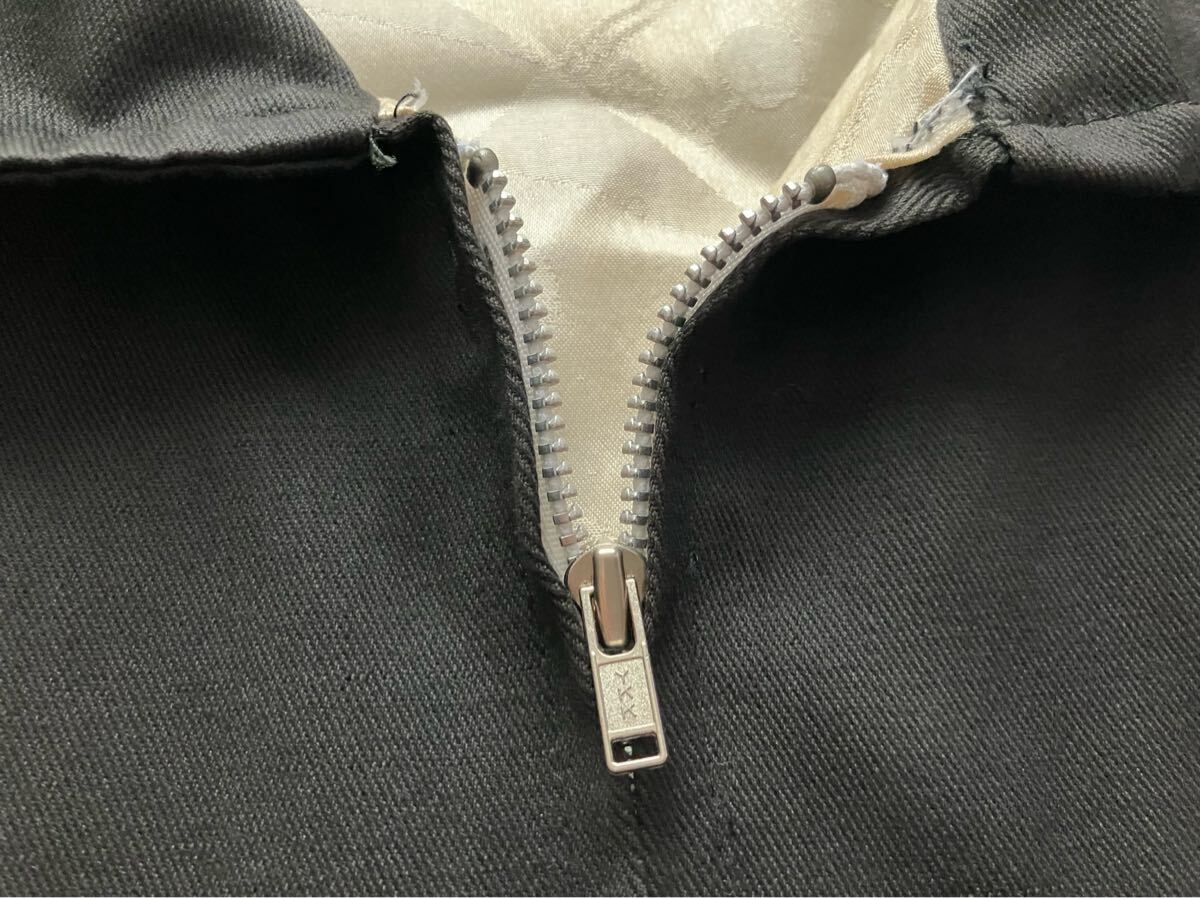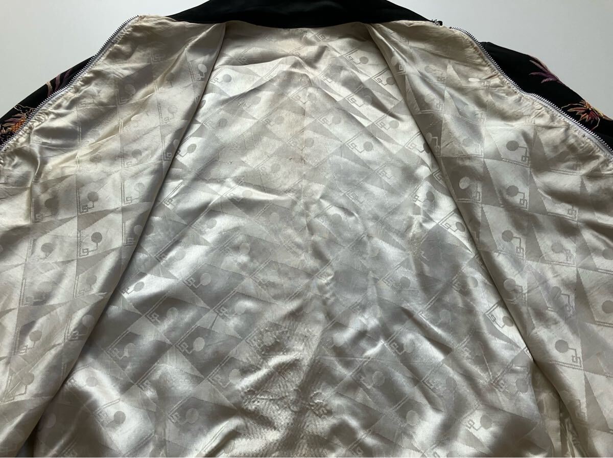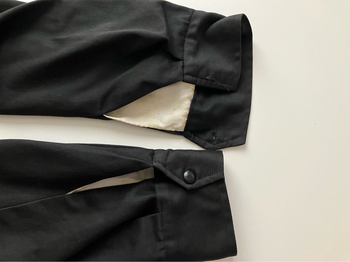 着用感があり、右袖先や左袖先、背中左裾に点汚れ、裏地に薄汚れ、右袖ボタンが欠損しています。