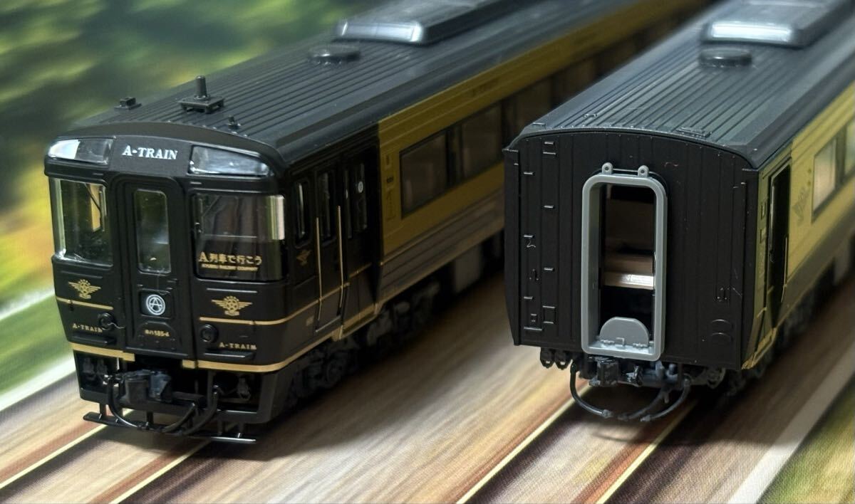 A-TRAINキハ185です。全車トミックスボディマウントTNカプラーSP取り付け換装済みハイグレードHG仕様です。トイレタンク取り付け車両以外はブレーキホース、ジャンパ栓ホース付にカプラー換装、トイレタンク、パーツ取り付け済みです。