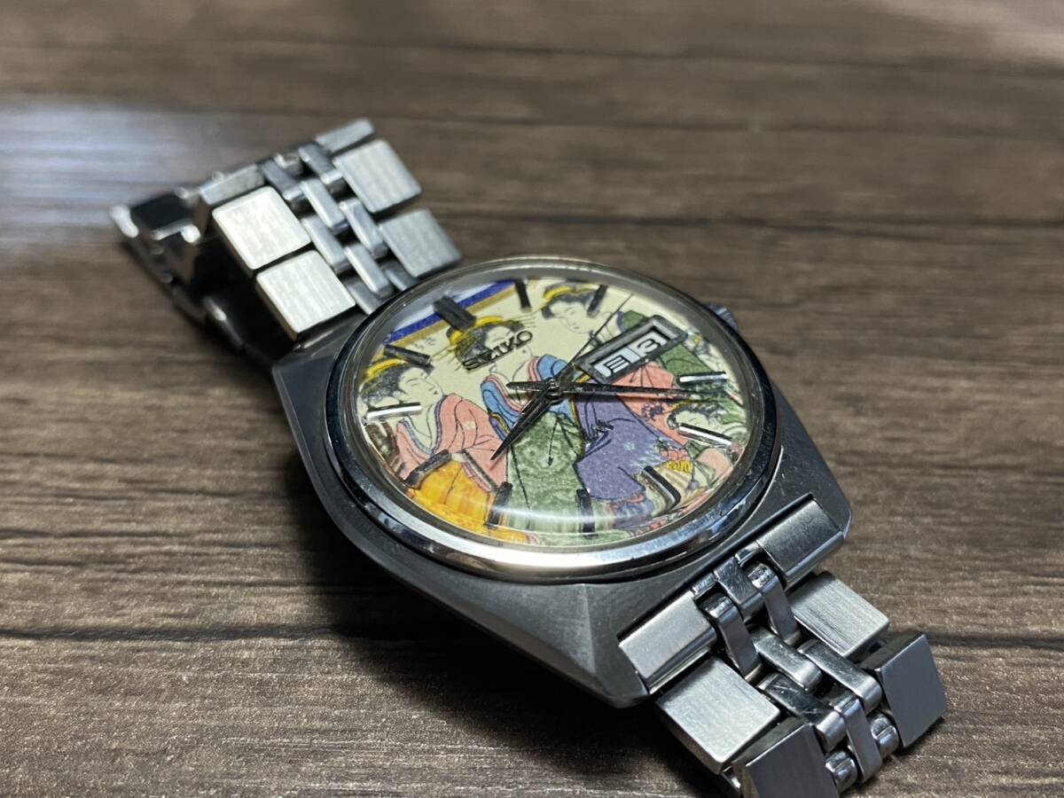 OH済み 逸品 鳥文斎栄之「花見 美人 子供」Seiko ロードマチック AT腕時計 浮世絵文字盤 UKIYOE