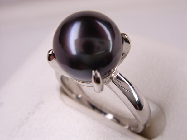 ★新品・送料無料★プラチナブラックパールリング★9.2mm★