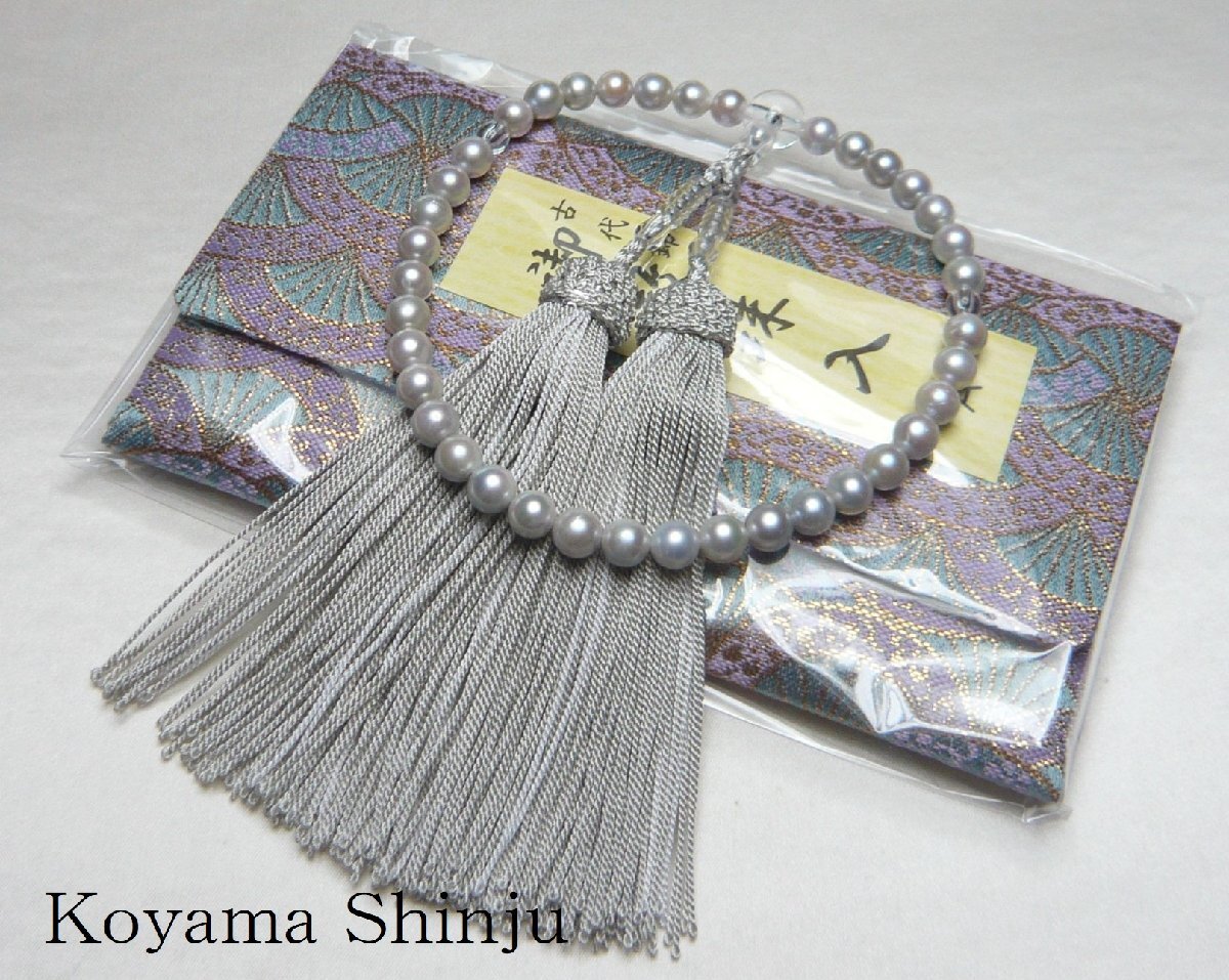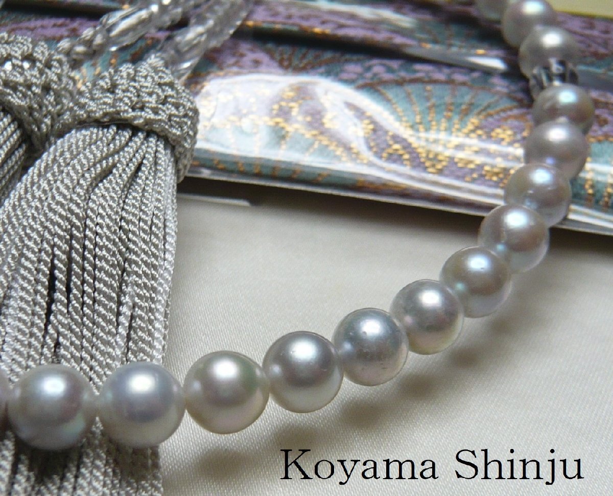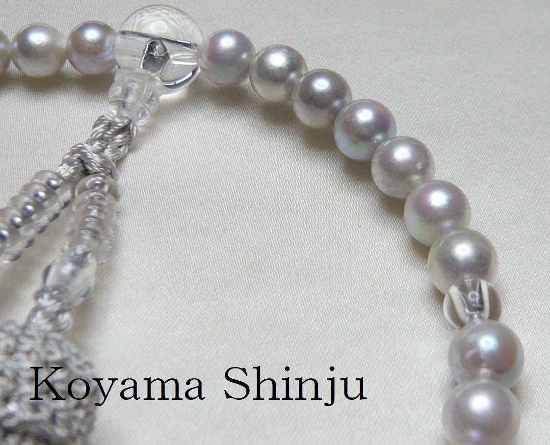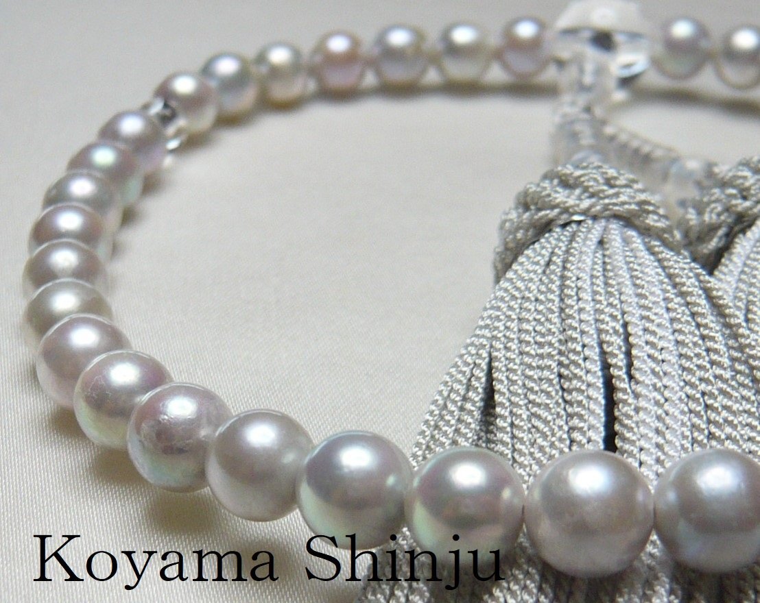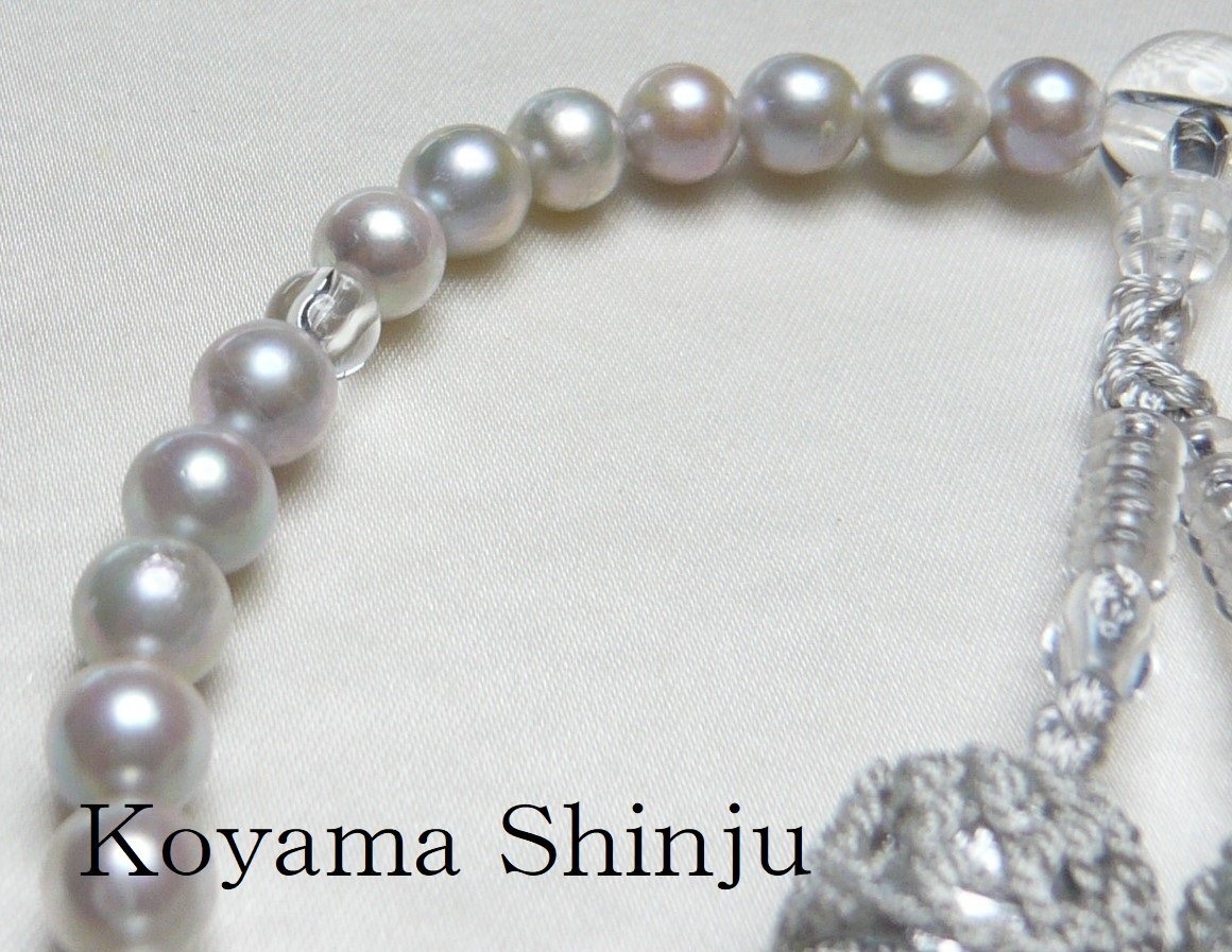 クリームグレーグリーンブルーピンク系あこや本真珠数珠 |