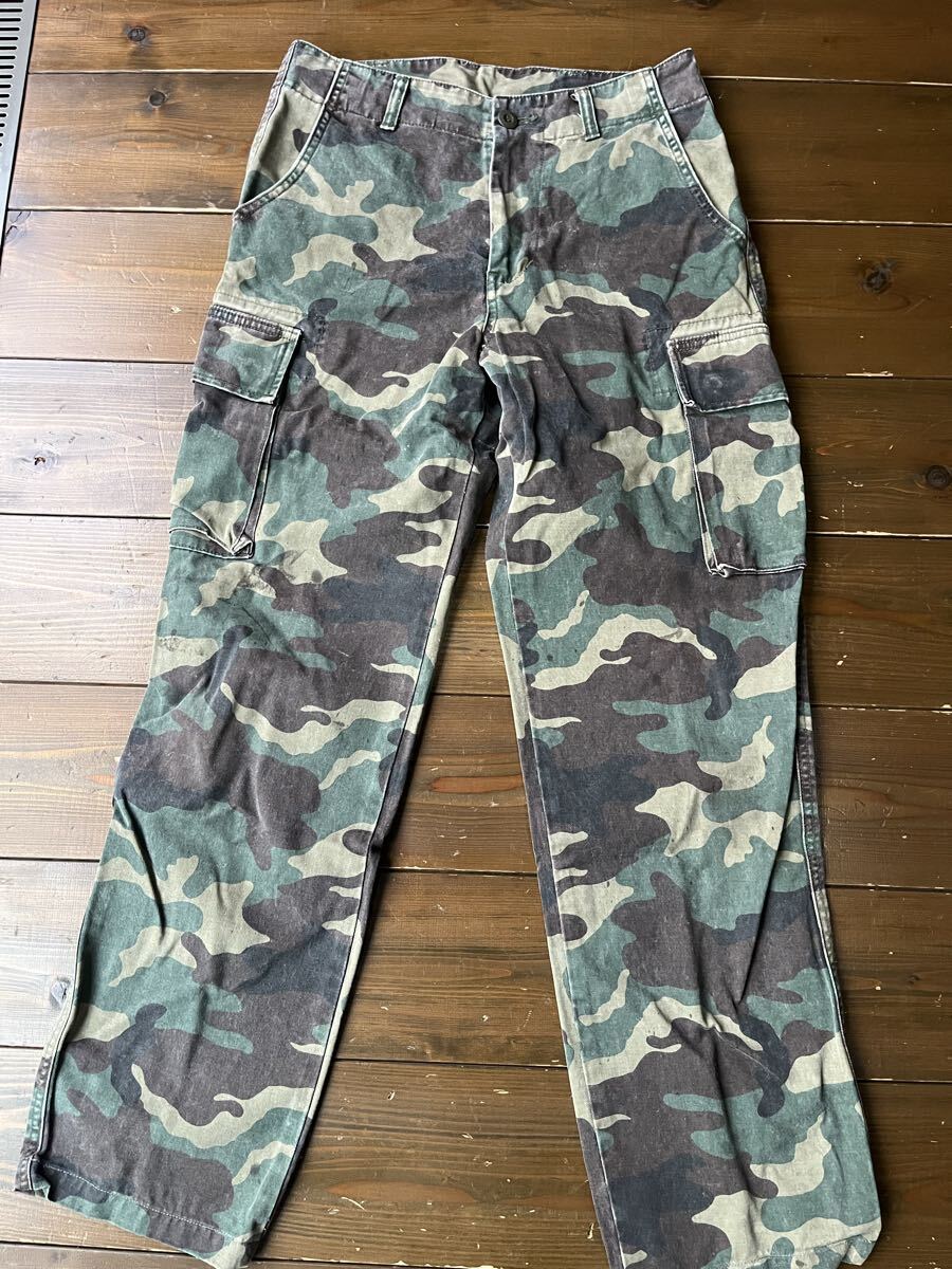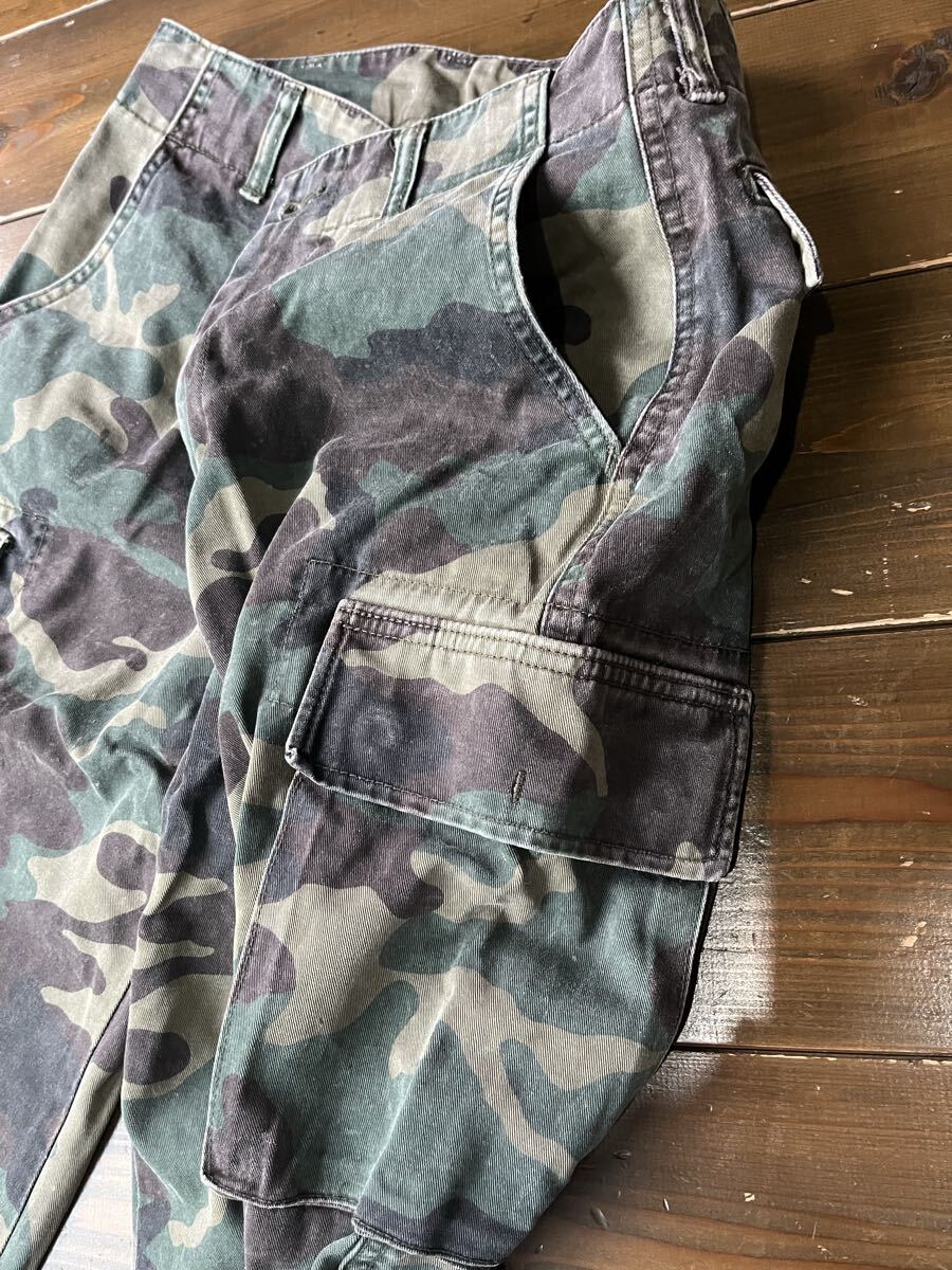 迷彩柄のカーゴパンツです。ミリタリーテイストがお好きな方におすすめです。