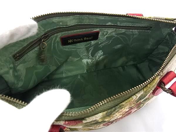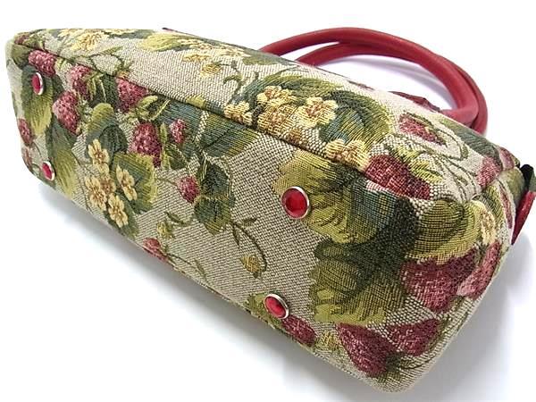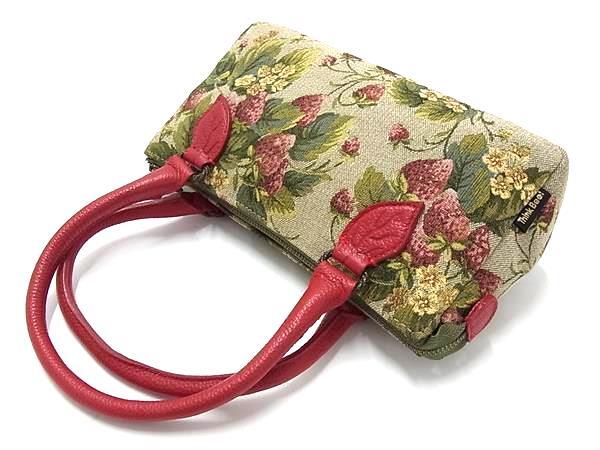 ■新品同様■ Think Bee! シンクビー! キャンバス×レザー ストロベリー いちご柄 ハンドバッグ トート グリーン系×レッド系 BS0666